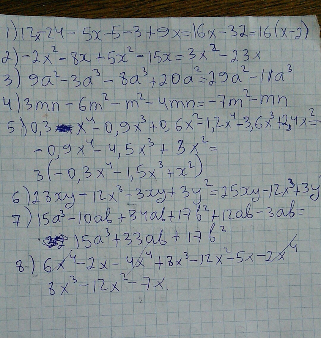 7) в конце первой строчки должно быть -3a^2, а не -3ab