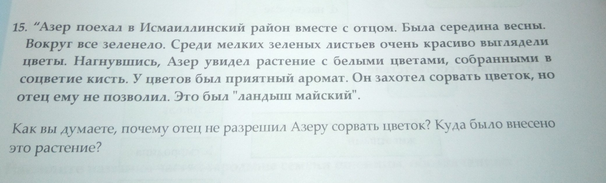 Отец не разрешил сорвать ландыш майский, потому что он занесен в Красную книгу и охраняется законом. Поскольку их количество с каждым годом уменшается в связи с деятельностью человека, их не нужно срывать