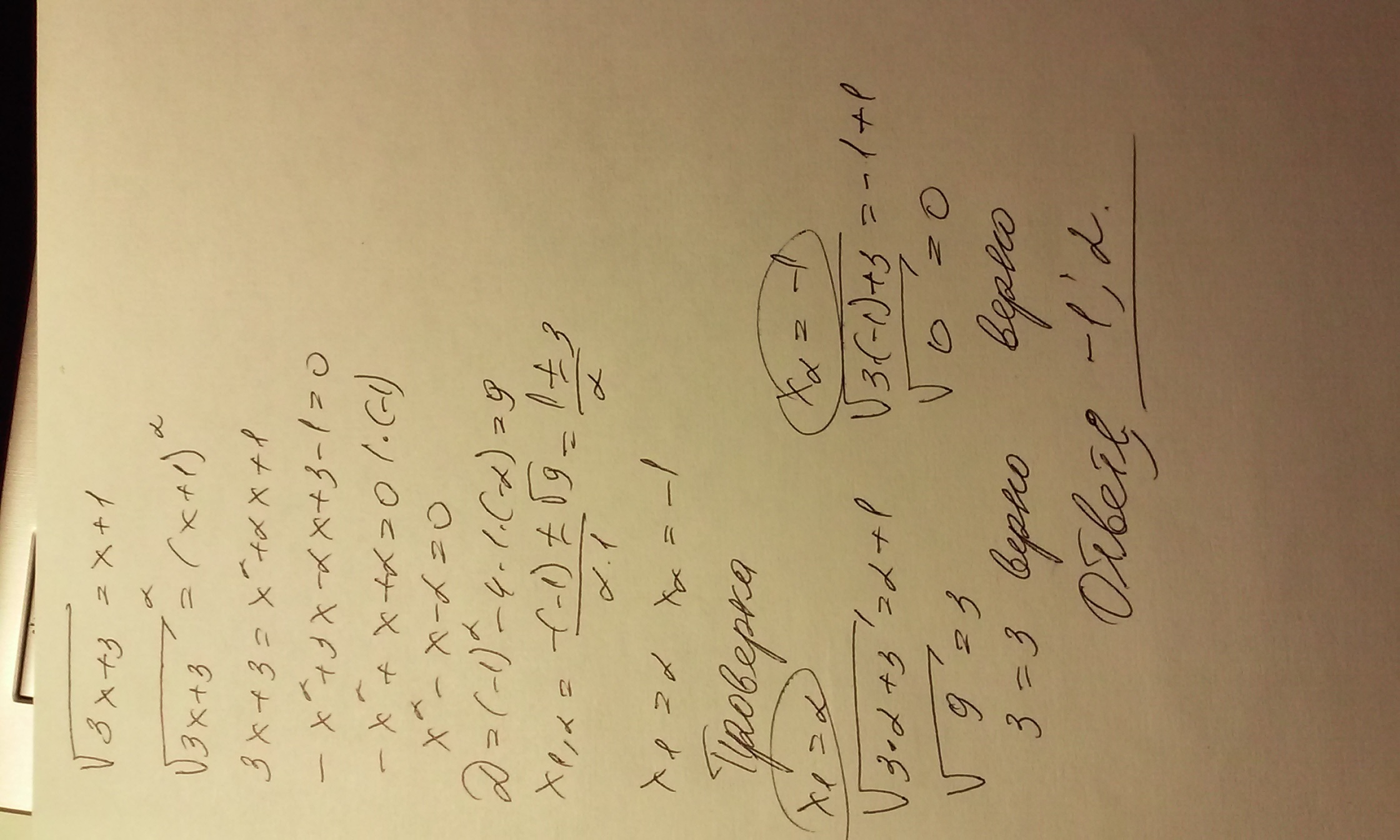 √(3х+3) = х+1 ОДЗ: 3х+3≥0; x≥ -1