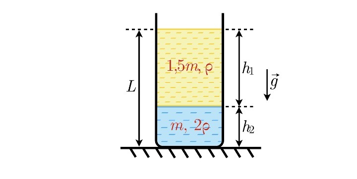 Решение. Общая высота обоих слоёв жидкостей равна L, которая равна L = h₁ + h₂, где h₁ = L - h₂, а h₂ = L - h₁.