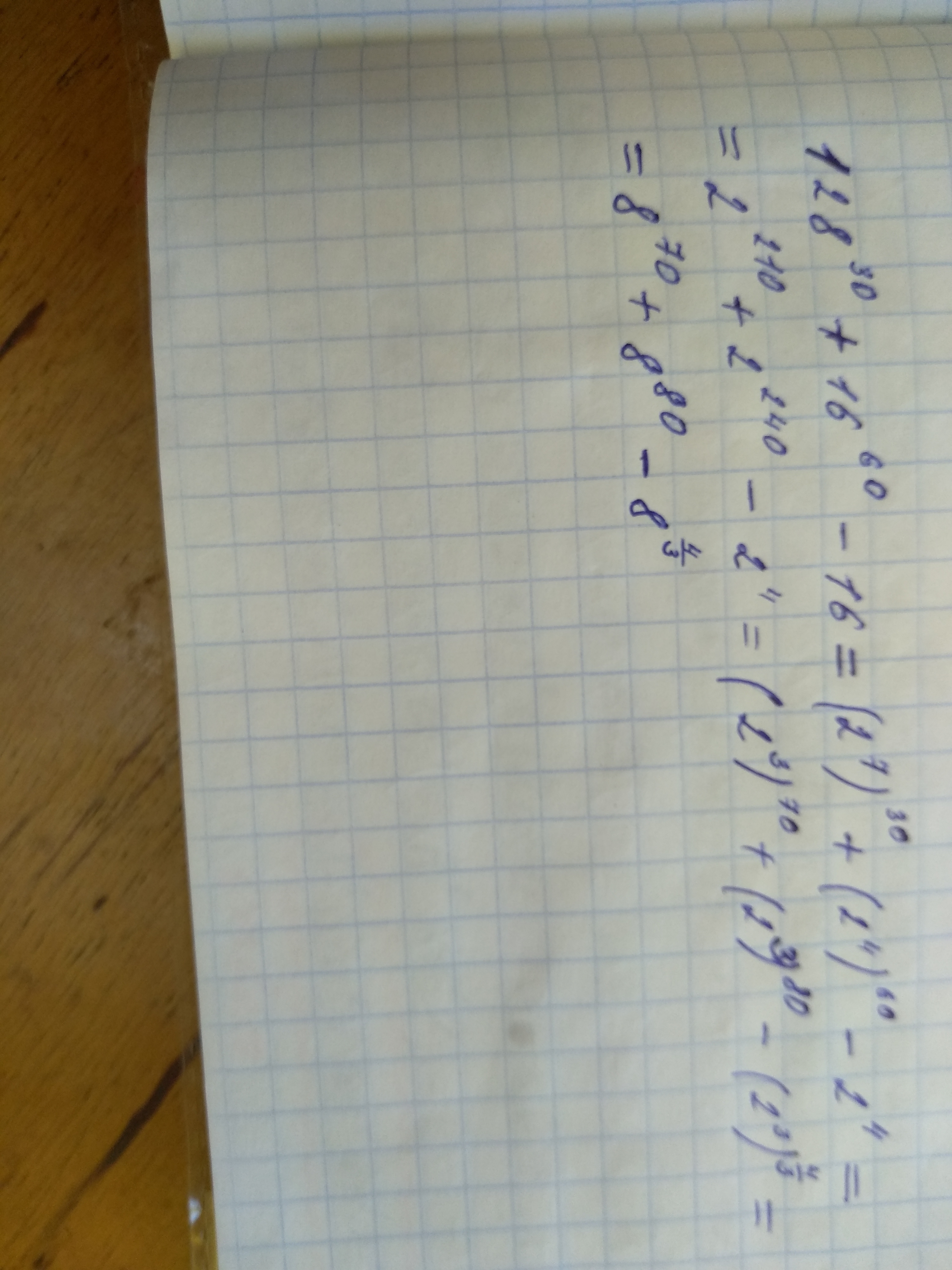 1) 128³⁰=(8*8*2)³⁰=(8²*2)³⁰=8⁶⁰*2³⁰=8⁶⁰*(2³)¹⁰=8⁶⁰*8¹⁰=8⁽⁶⁰⁺¹⁰⁾=8⁷⁰.