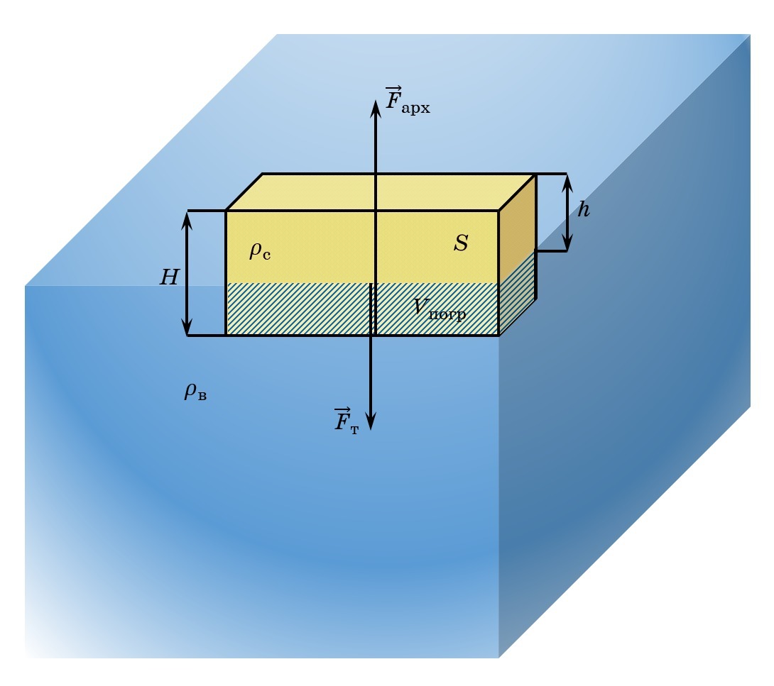 Fарх = ρ(в)gV(погр); V(погр) = (H - h)S ⇒ Fарх = ρ(в)g(H - h)S