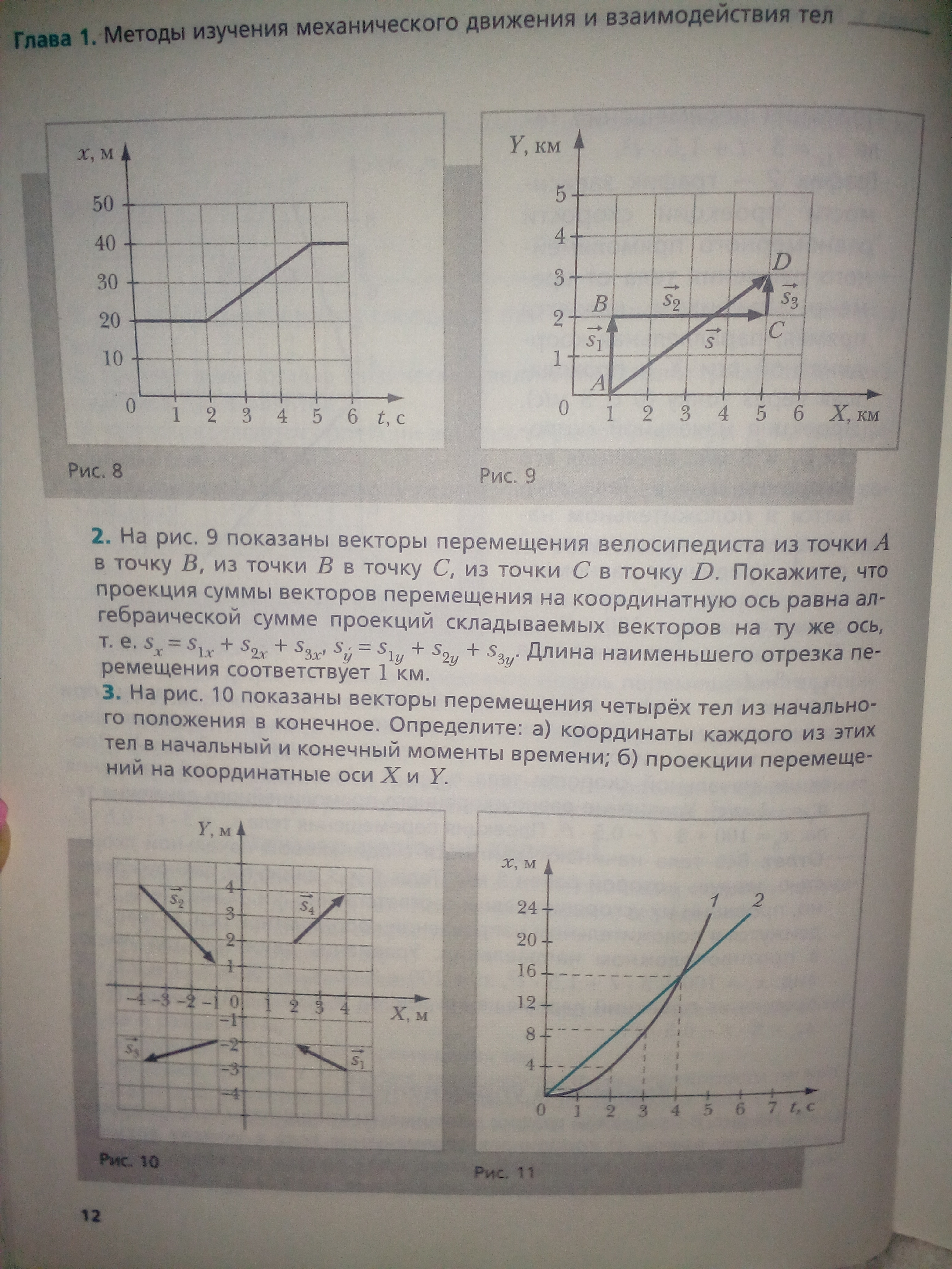 Проекции перемещения на ось Х равна разности х-координат начального и конечного положения. Проекции перемещения на ось Y равна разности y-координат начального и конечного положения.