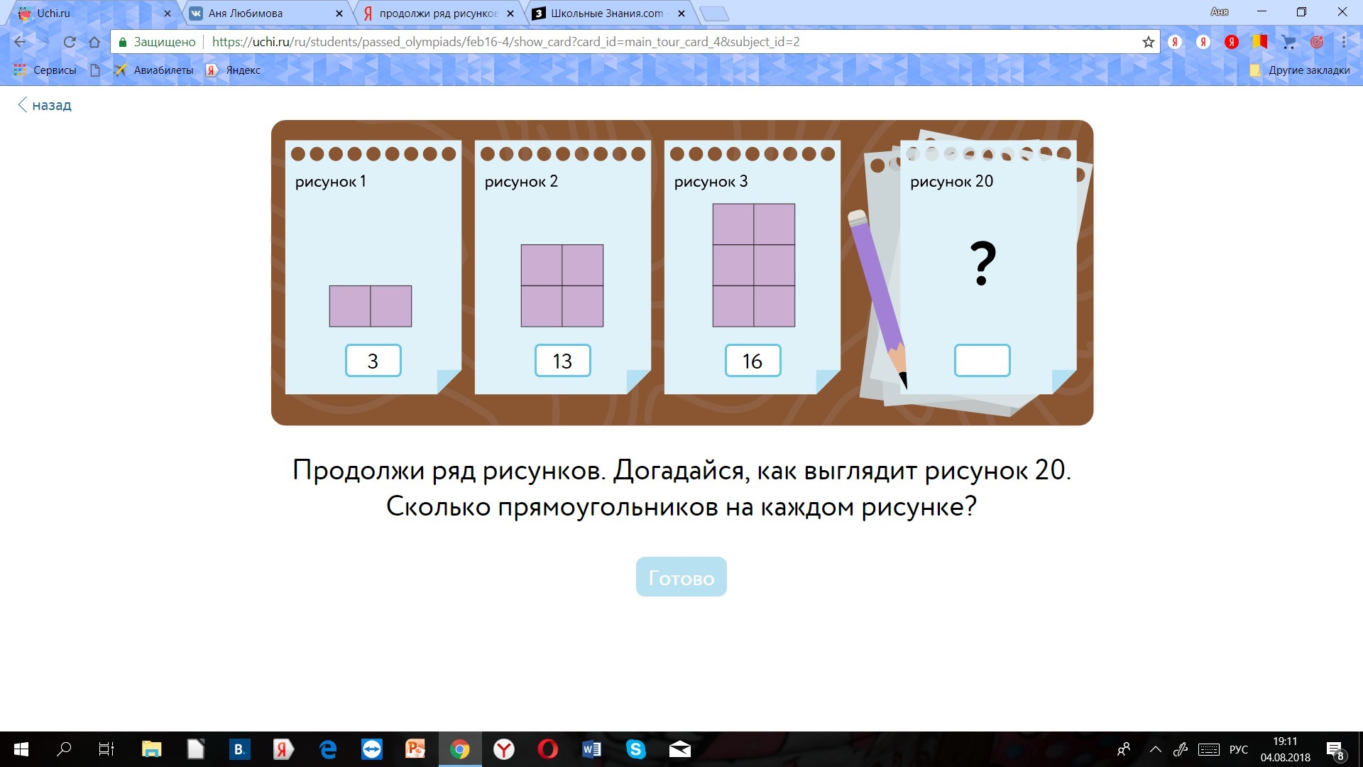 Прямоугольников по рисункам: 3, 9, 18, 867