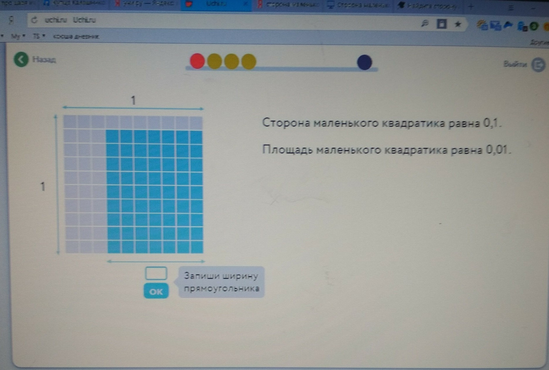 7 маленьких квадратиков имеют длину