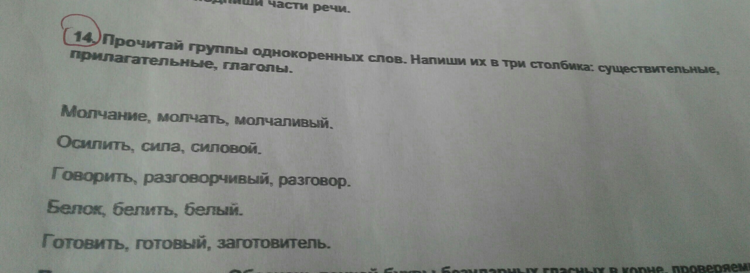 Прочитайте группы однокоренных слов напиши их в три столбика Существительные прилагательные глаголы