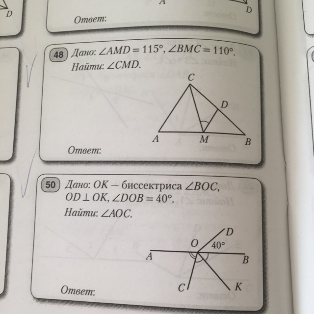 Т.к уголКОD прямой,то уголBОK=90-40=50.