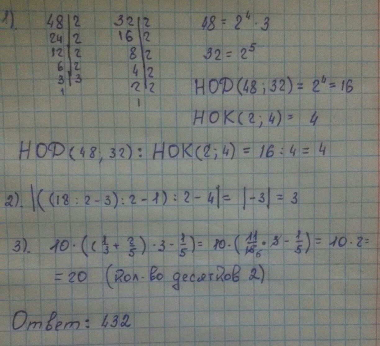 НОД (48; 32) = 2 · 2 · 2 · 2 = 16.