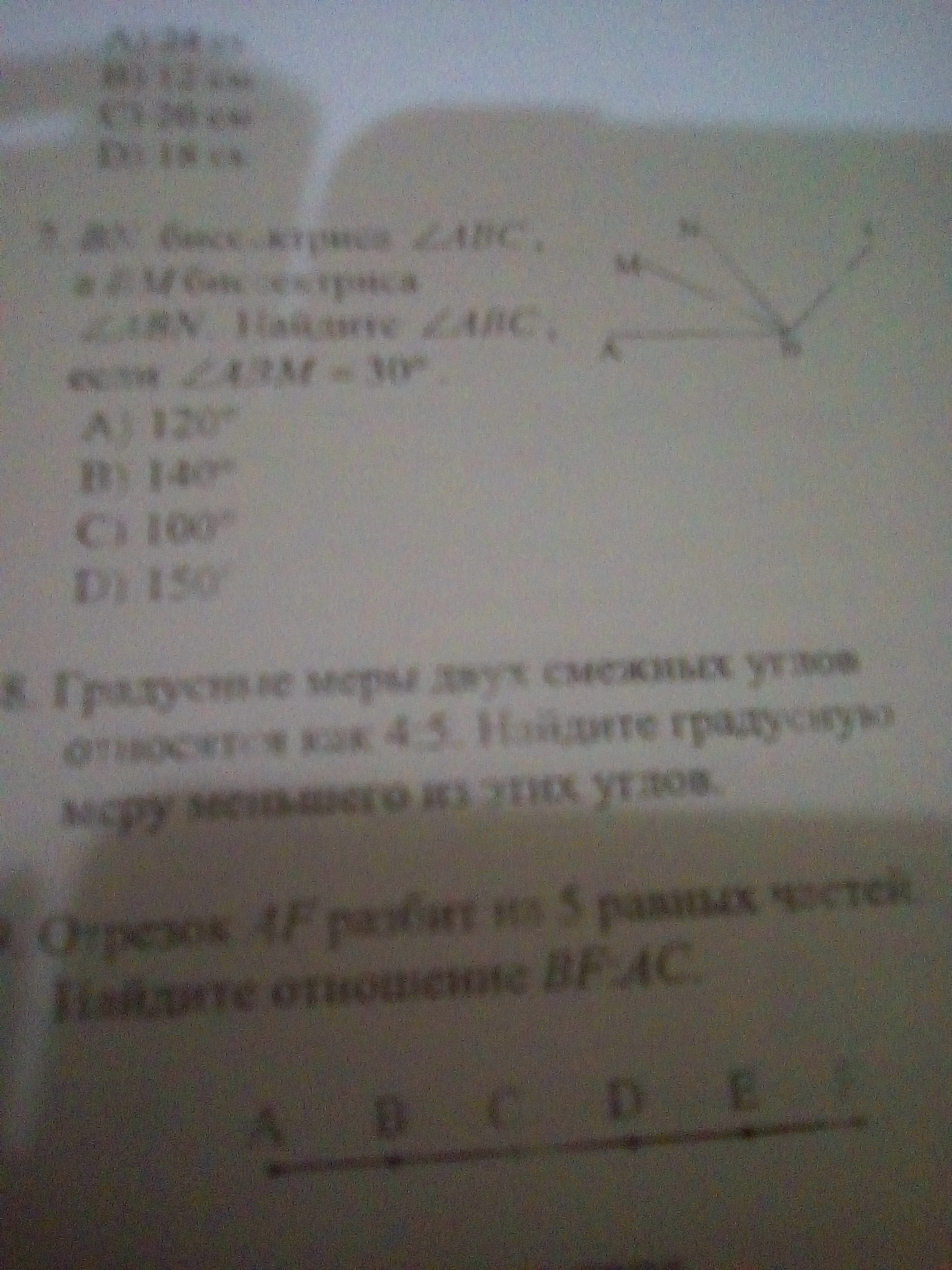 BN биссектриса угла ABC, а BM биссектриса угла ABN.Найдите уголABC если угол ABM=30(градус)