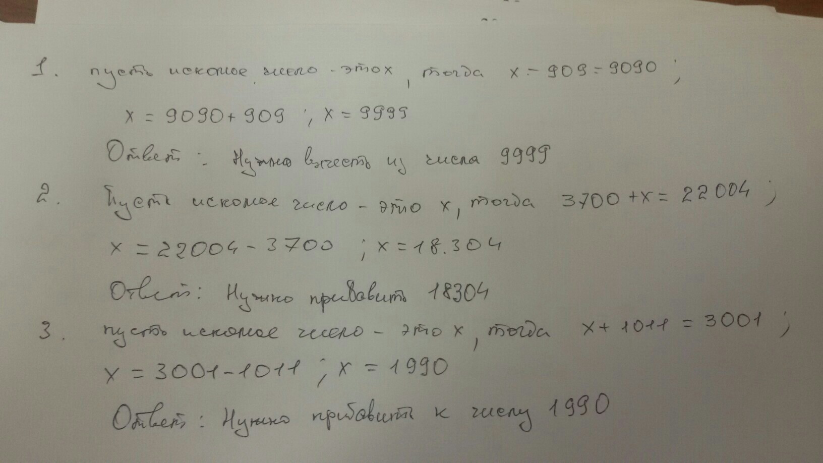 1. Х-909=9090