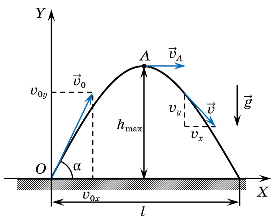 ) направлена под углом (α) к горизонту: