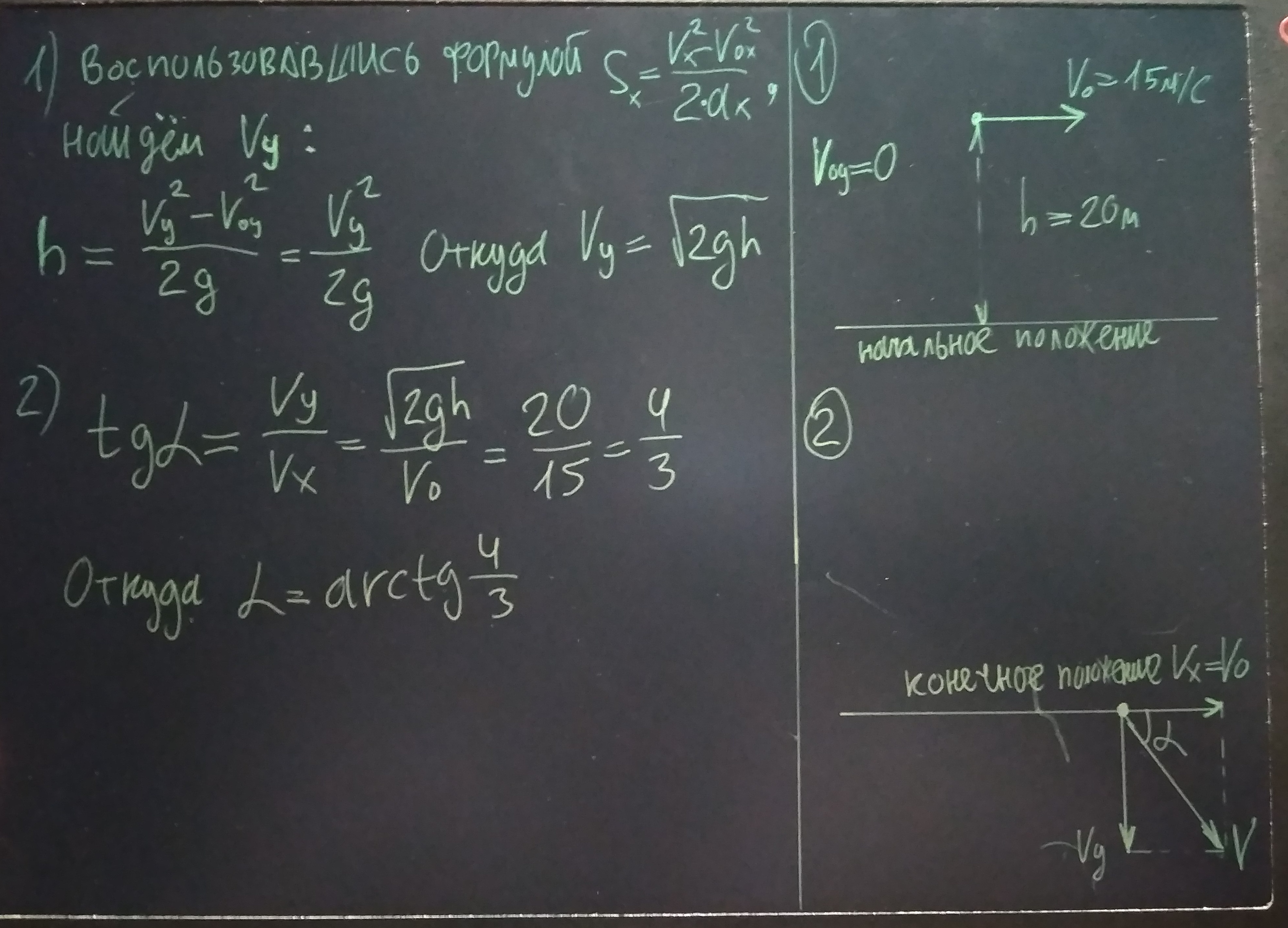 Камень брошен под некторым углом к горизонту. Он достиг максимальной высоты 20м. Его скорость на этой высоте равна 15м/c. Под каким углом к горизонту камень упадет на землю?