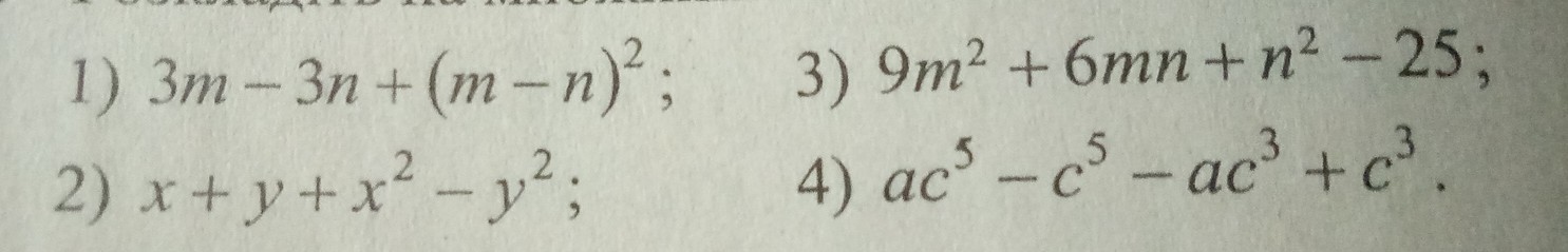 1) 3m - 3n + (m - n)² = 3(m - n) + (m - n)² = (m - n)(3 + m - n)
