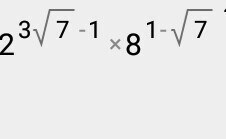 2^{3sqrt{7}-1}  *8^{1-sqrt{7}}  =2^{3sqrt{7}-1}*2^{3(1-sqrt{7})}=2^{3sqrt{7}-1}*2^{3-3sqrt{7}}=2^{3sqrt{7}-1+3-3sqrt{7}} =2^{2} =4