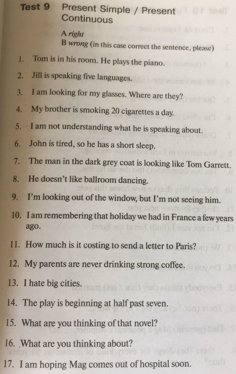 I am looking for my glasses. Where are they? Я ищу свои очки. Где они? (Present Continuous)
