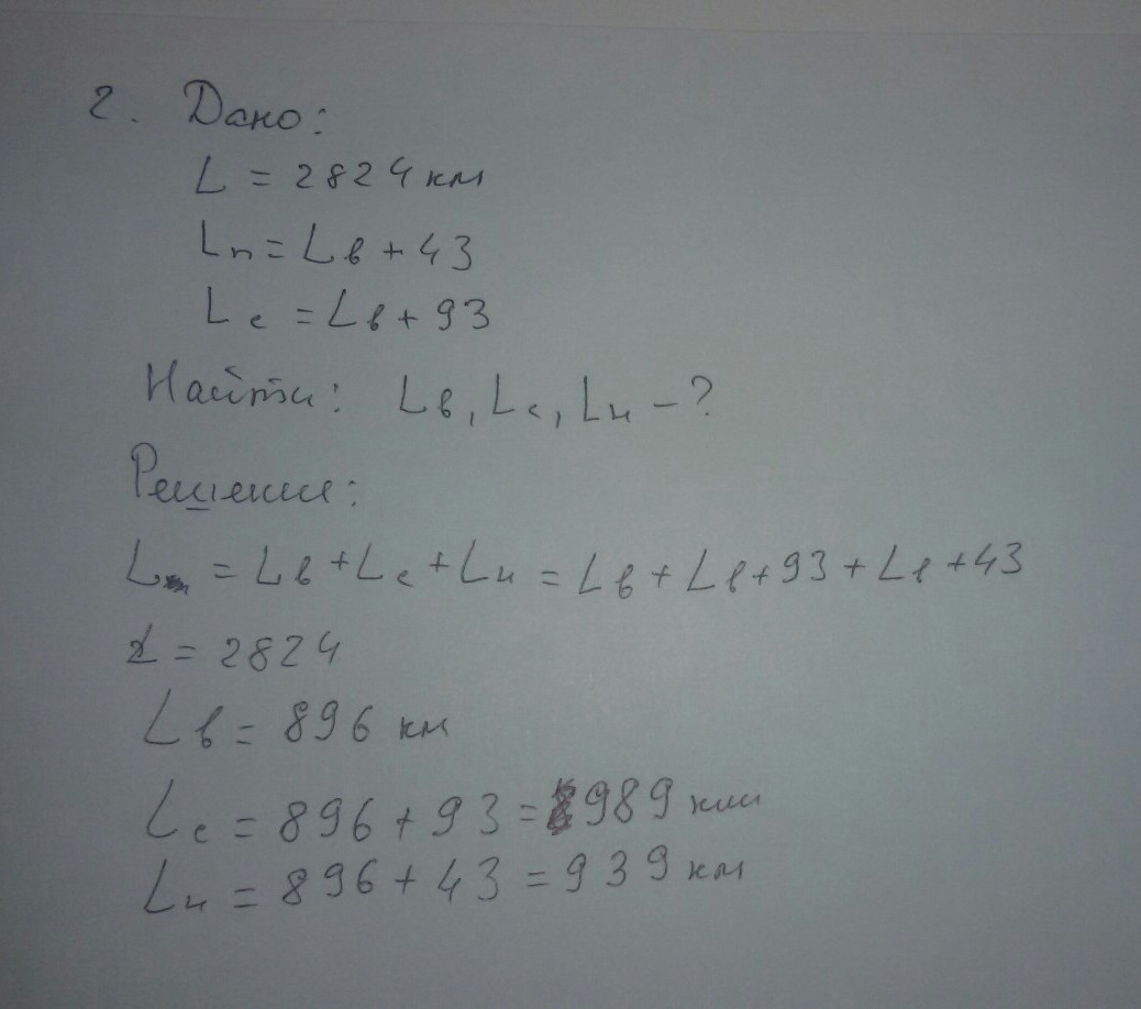 2) Lв=896 км, Lc=989 км, Lн=939 км