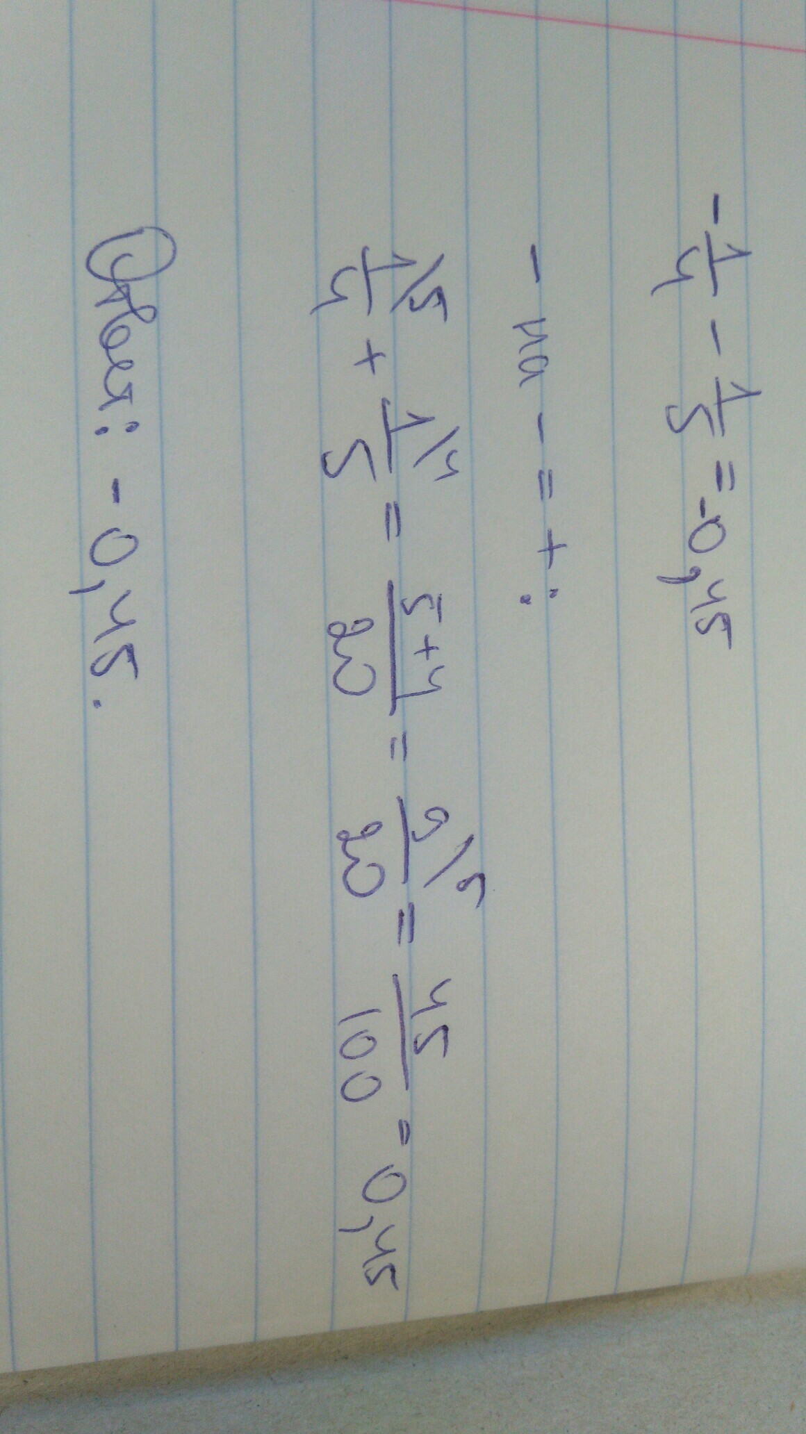 -1/4-1/5=-5/20-4/20=-9/20=-0,45