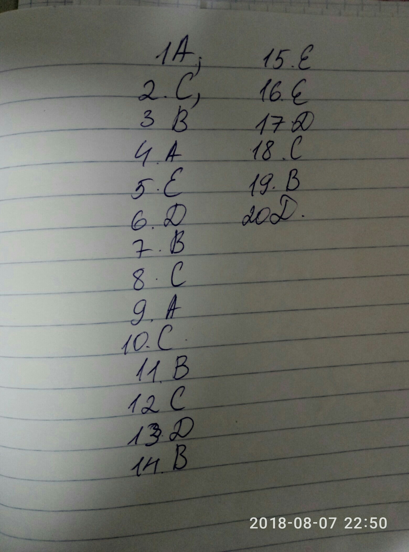 1.a 2.d 3.b 4.a 5.e 6.d 7.b 8.c 9.b 10.c 11.b 12.c 13.d 14.b 15.e 16.e 17.d 18.d 19.b 20.d