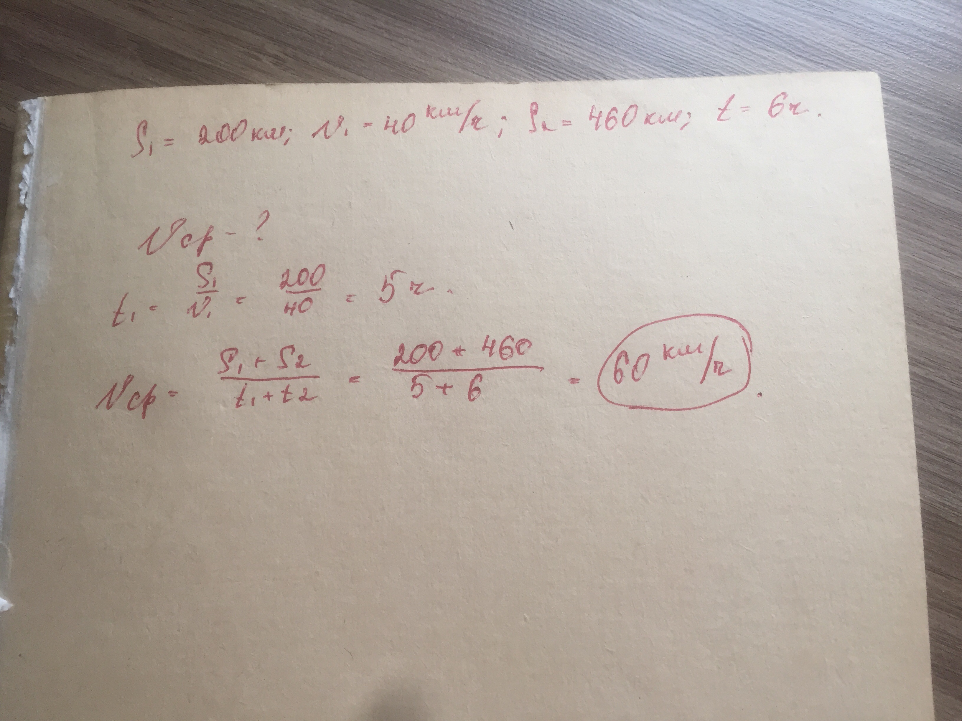 Автомобилист 200 км пути ехал со скоростью 40 км/ч, а 460 км пути он проехал за 6 часов. Найти среднюю скорость автомобиля в пути