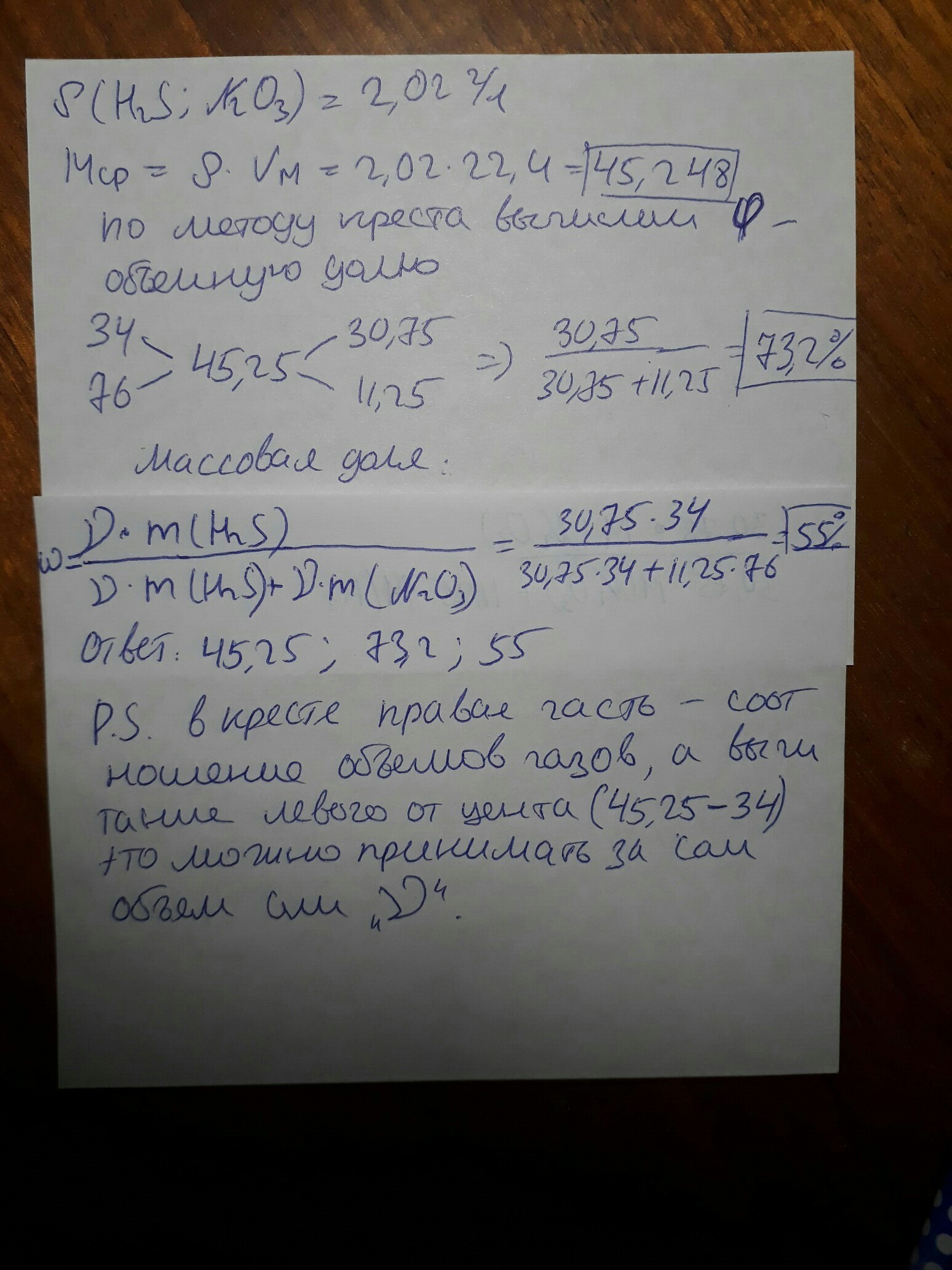 1) среднюю молярную массу газовой смеси;Ответ: 45,25