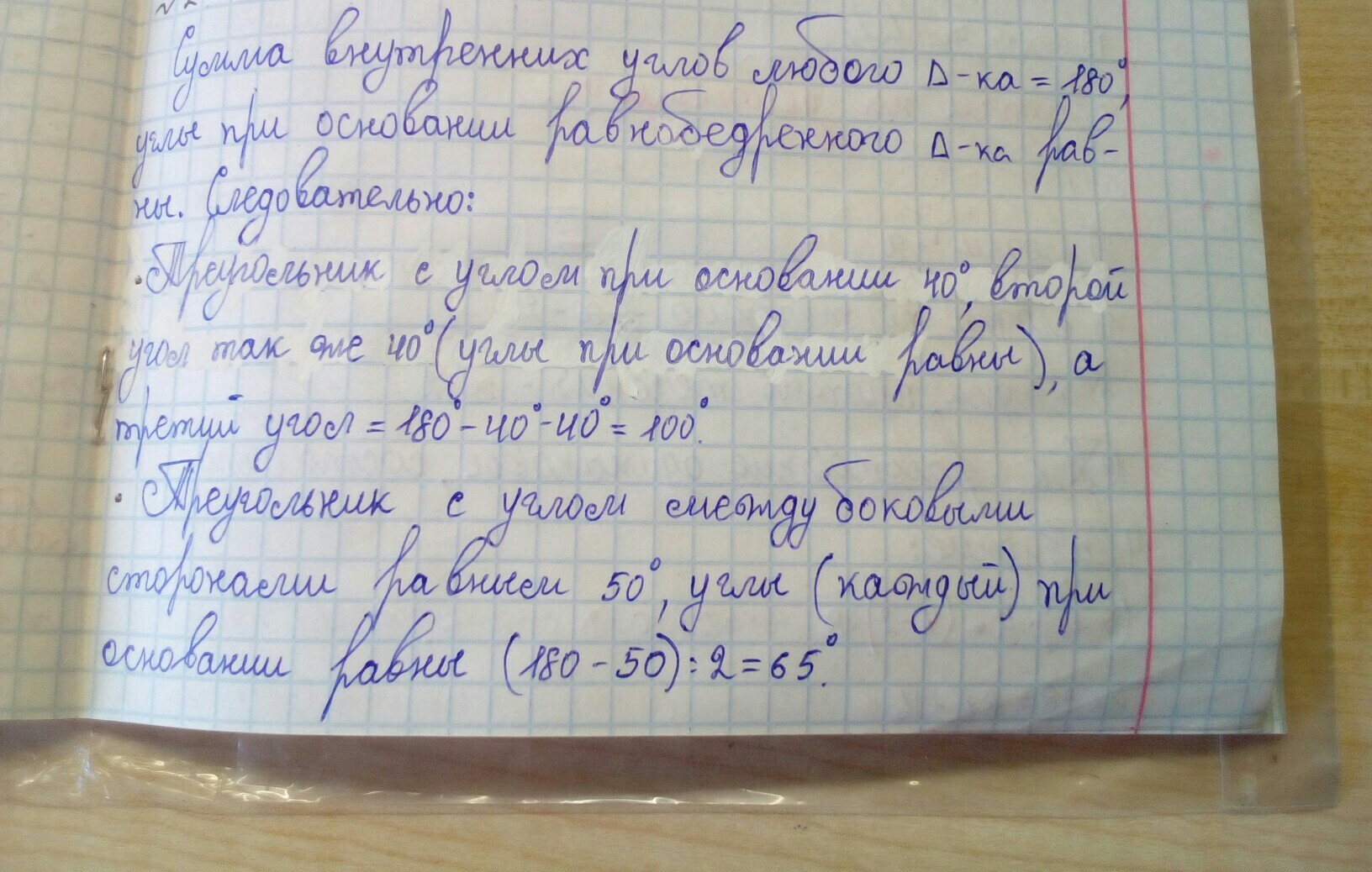 На маленьком: оба угла равны (т.к. треугольник равнобедренный), следовательно 130 сумма оставшихся углов(180-50)). 130/2 = 65