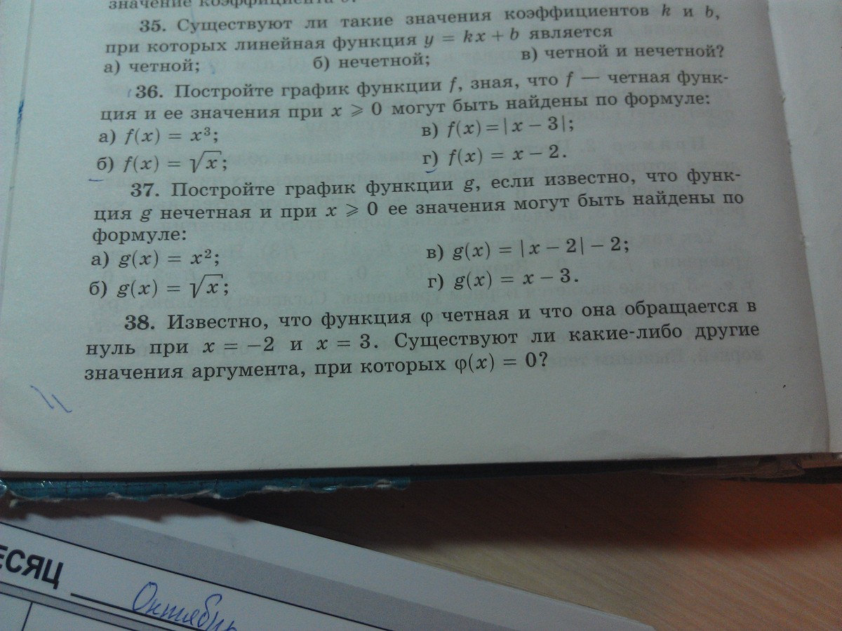 Так как функция четная, то ее график симметричен относительно оси ординат, значит если число с - нуль функции, то и число -с - тоже ее нуль. Значит кроме указанных нулей, нулями будут числа 2 и -3.