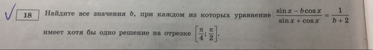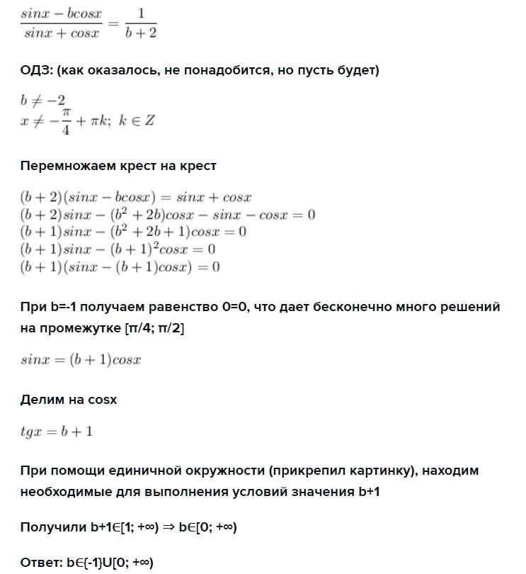 При b=-1 получаем равенство 0=0, что дает бесконечно много решений на промежутке [π/4; π/2]