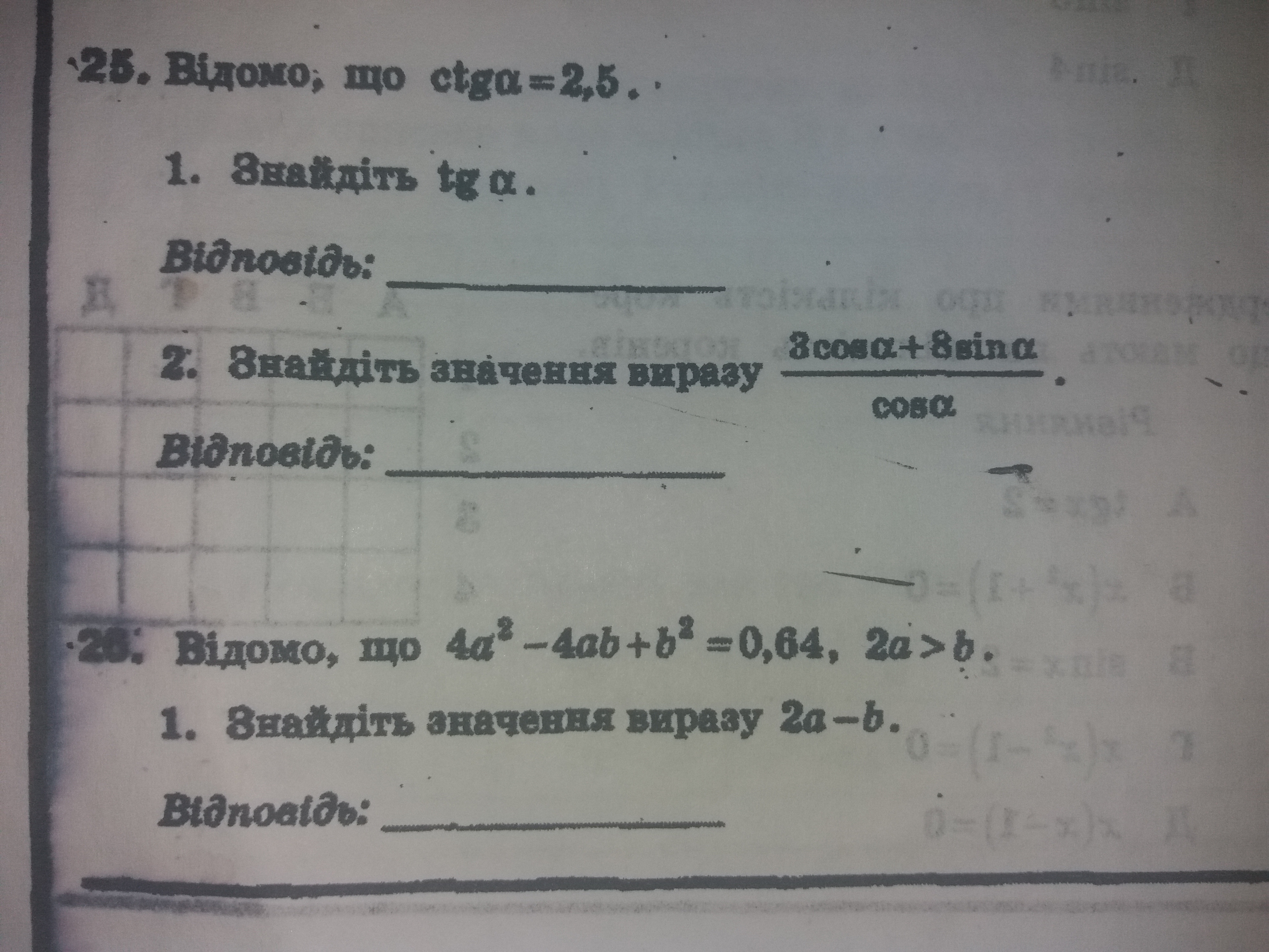 25.1 tga = 1/ctga = 1/2,5 = 10/25 = 2/5 = 0,4