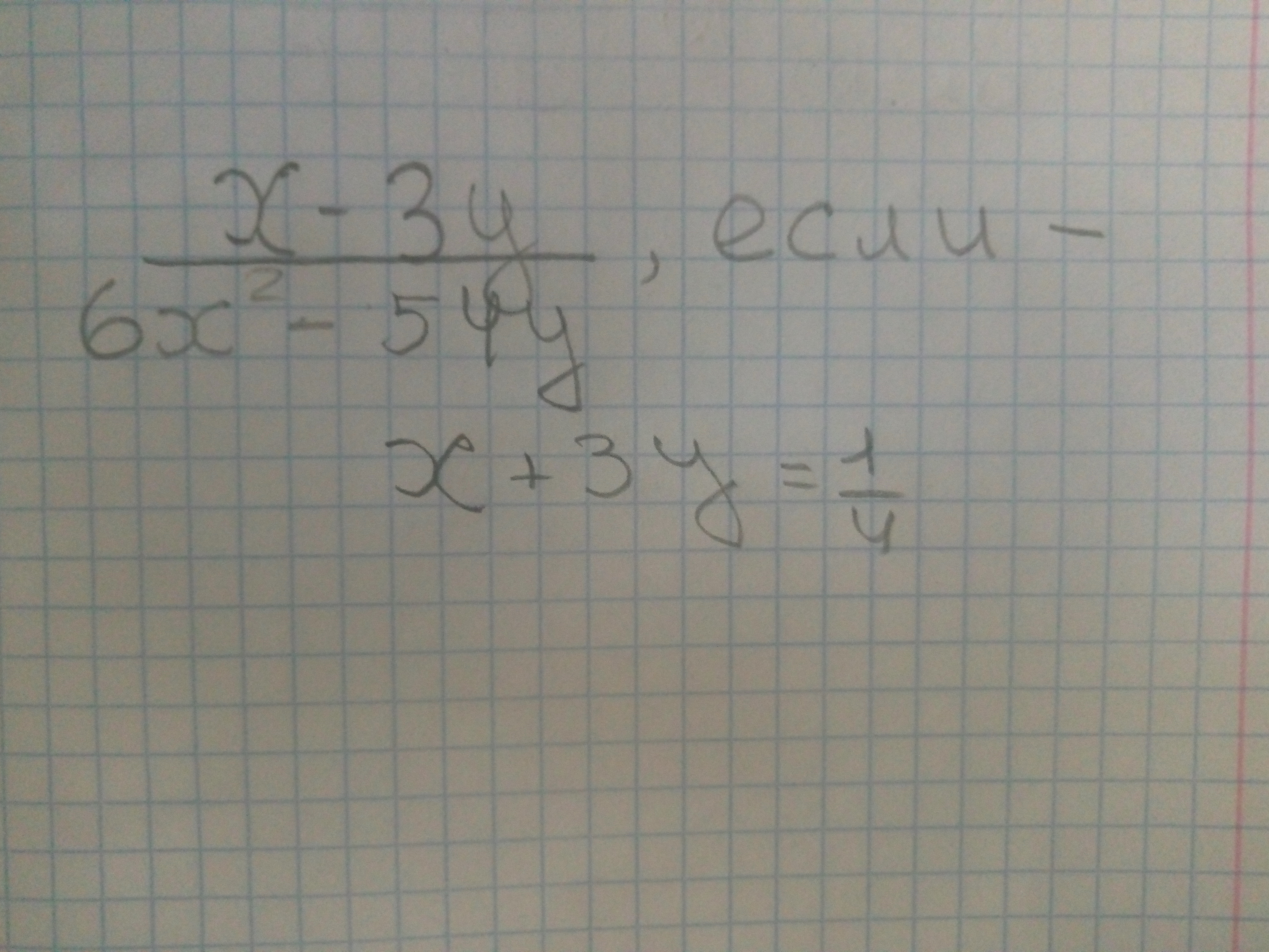 frac{x - 3y}{6x ^{2} - 54y ^{2}  } =  frac{x - 3y}{6(x^{2}  - 9y^{2} )}  =  frac{x - 3y}{6(x  - 3y)(x + 3y)}  = 6(x + 3y) = 6 times  frac{1}{4}  = 1.5