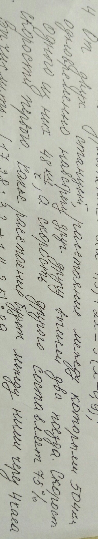 2) 48 * 4 = 192 (км) -- проедет первый поезд за 4 часа