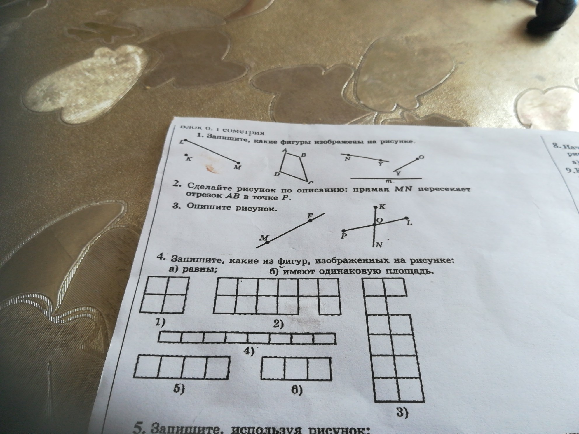 4) а) равны 2 и 3 фигуры ; б) равная площадь у 1 , 4 , 5 и у 2 , 3 .