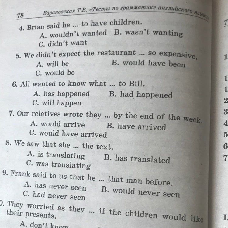4 С, 5 С, 6 B, 7 С, 8 С, 9 С