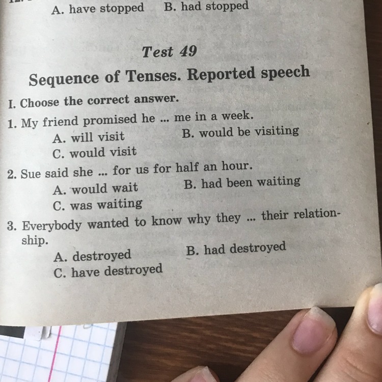 1)Friend promised -в прошедшем времени,поэтому тут будет would,а не will.Друг посетит 1 раз на неделе,это не длительное,поэтому здесь будет C(would visit)