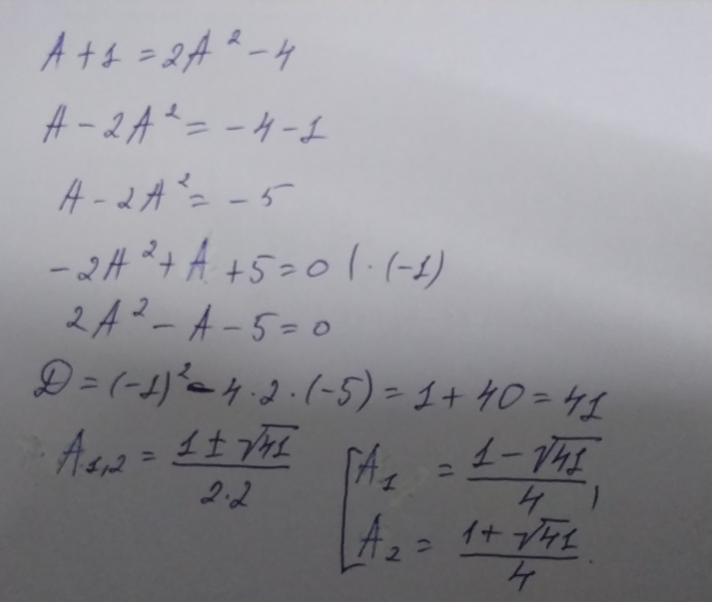 2A²-4-A-1=0