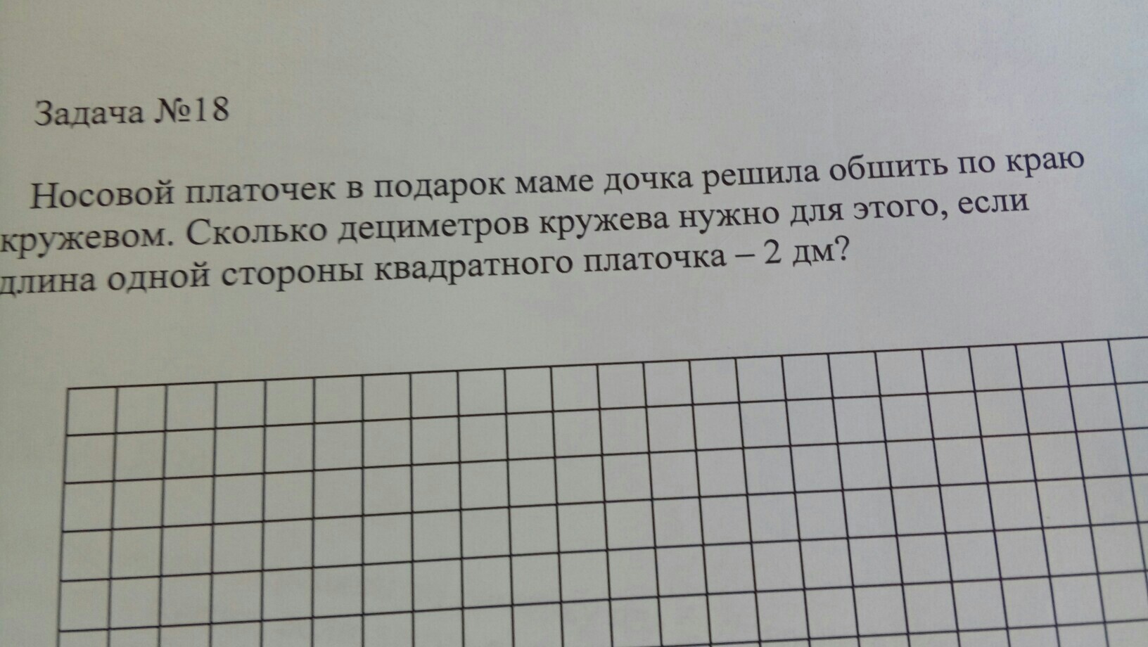 Платок квадратный, а значит 4 стороны. 4 равных стороны. 4 по 2дм = 8