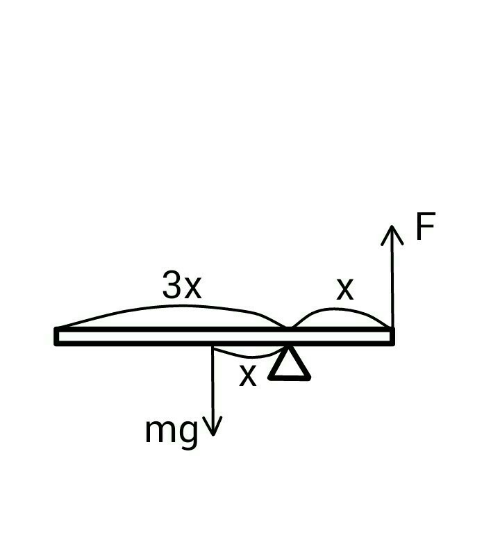 Нехай довжина всієї дошки = 4х, тоді довжина від кінця дошки до опори = х.
