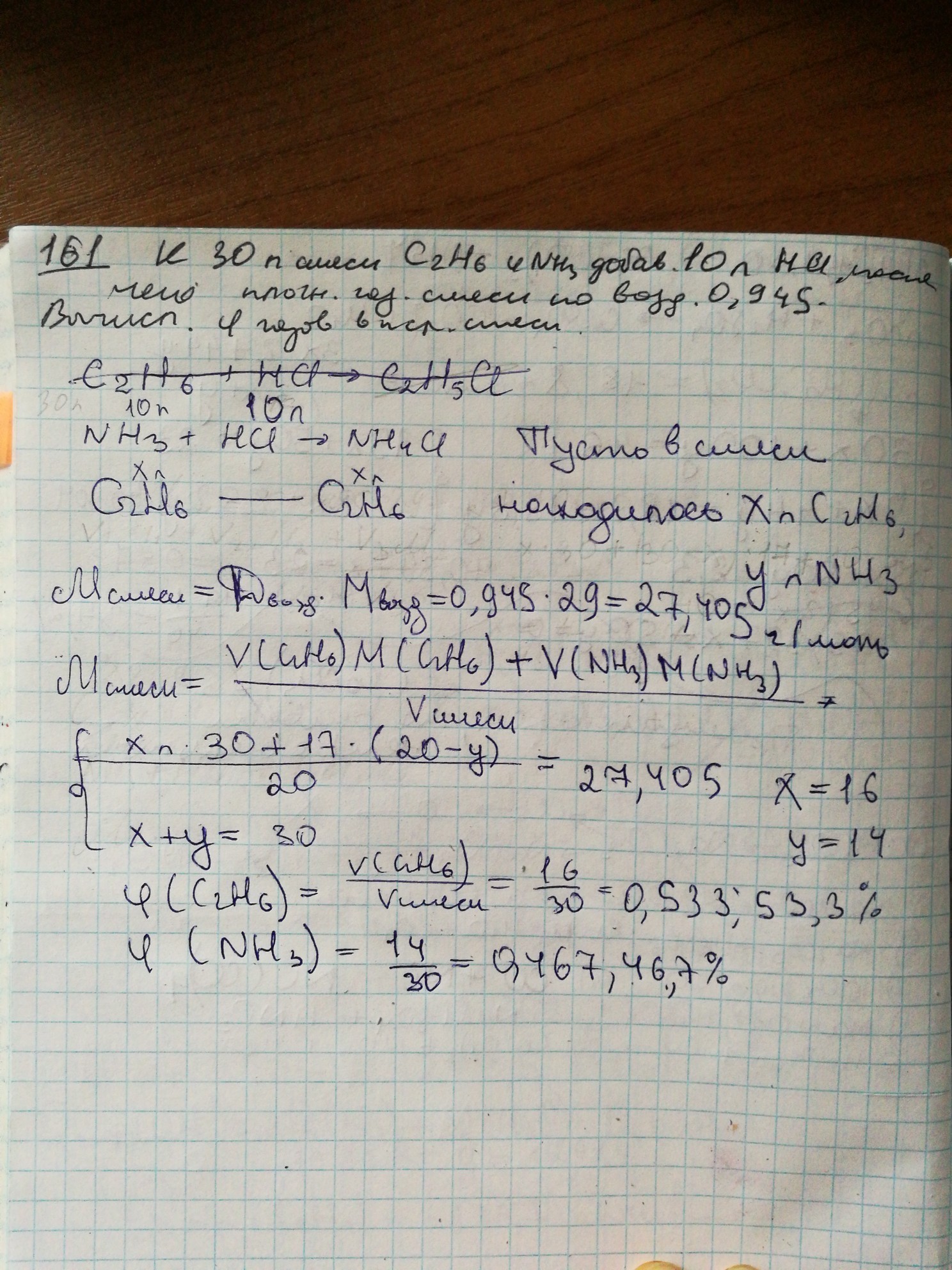 пояснение:10 л хлороводорода вступили в реакцию,из уравнения следует,что прореагировало 10 л аммиака,следовательно,объем новой смеси газов равен 30-10=20 л.значит,аммиака осталось (20-у) л