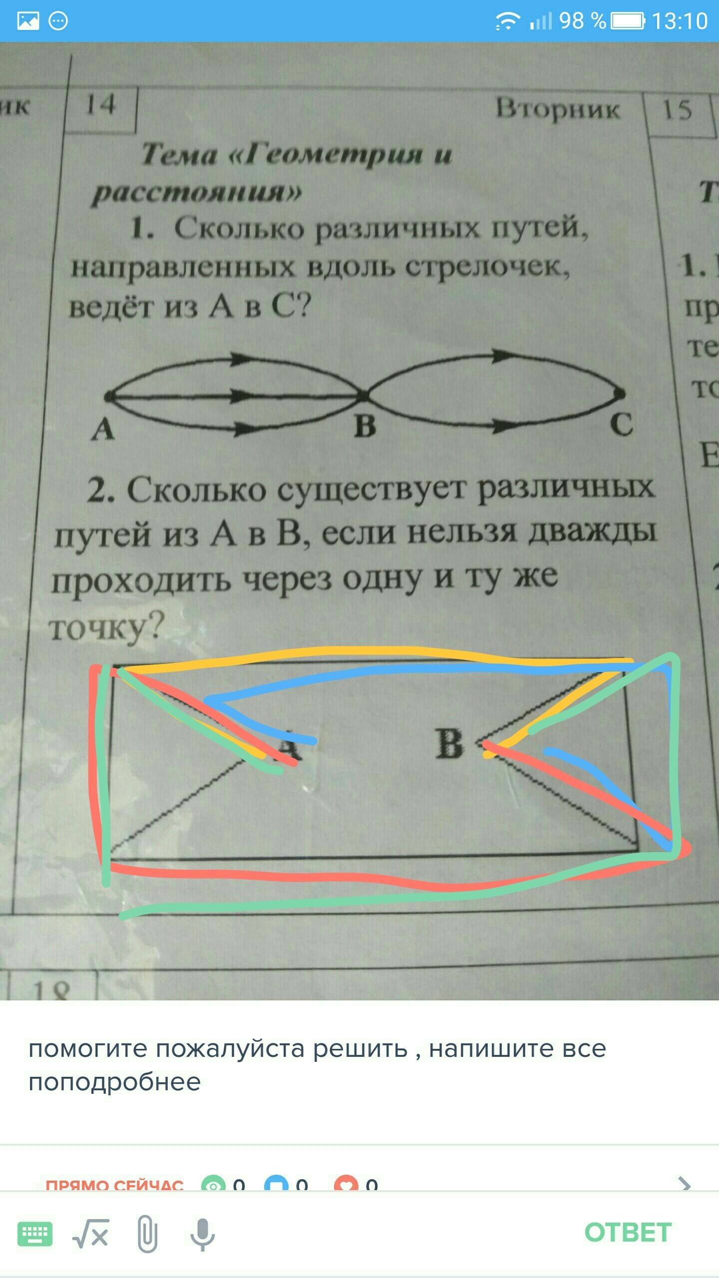 1) 6 (Из АБ 3 варианта, и у каждого из этих 3 ещё по 2) 3*2=6