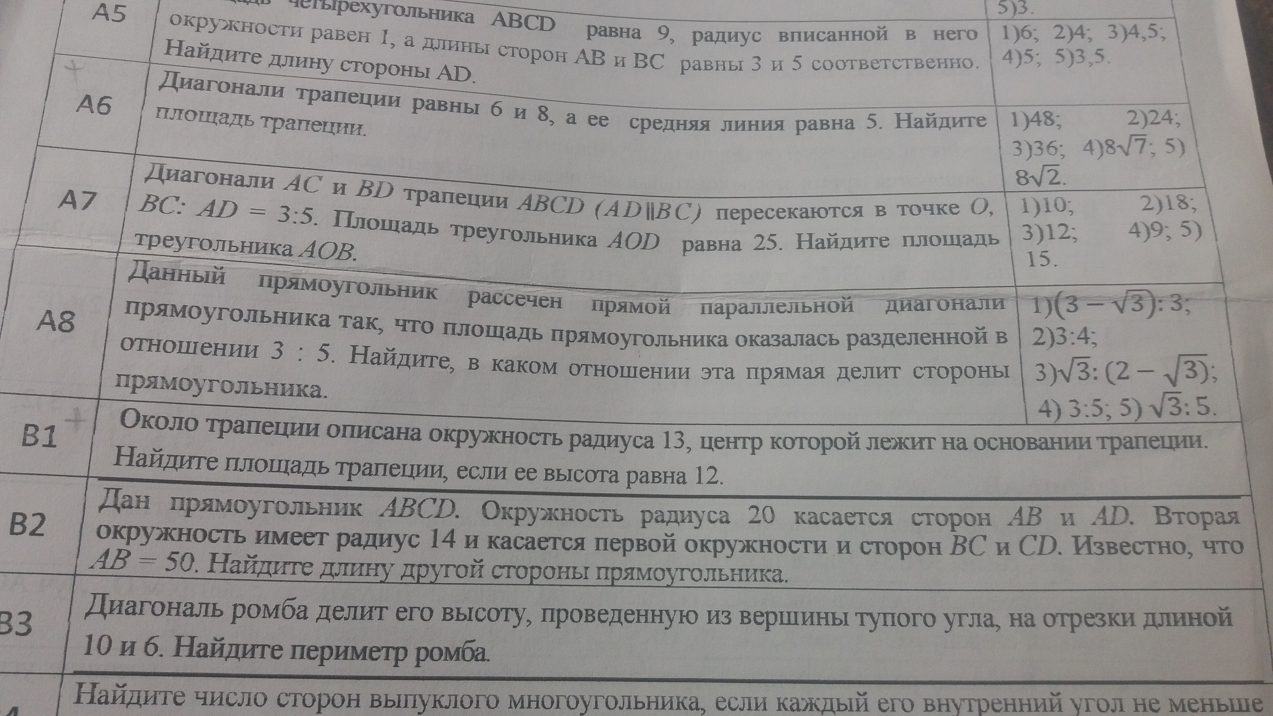 Тогда S(ABCD) = 3x + 5x = 8x, S(ΔABC) = 8x/2 = 4x.
