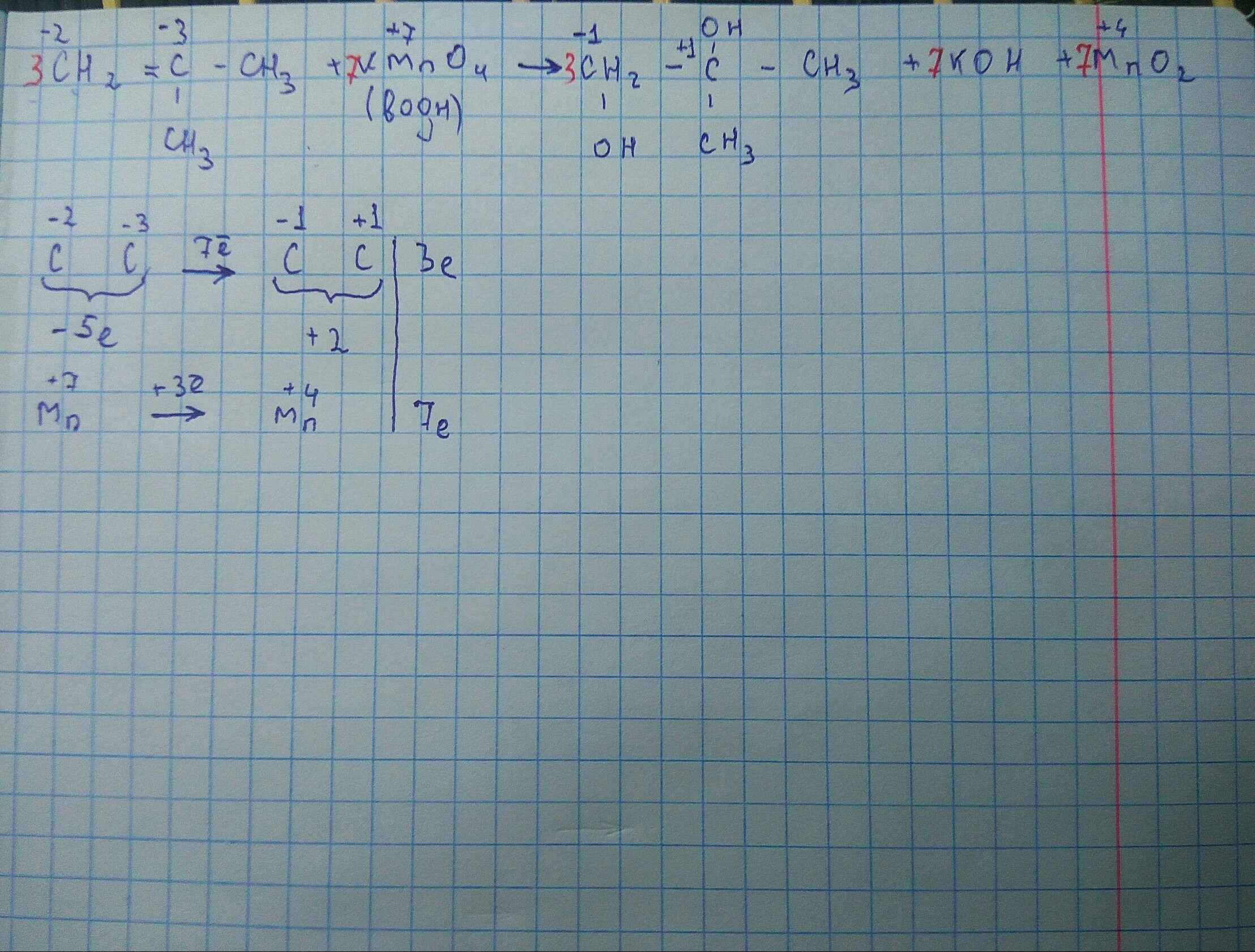 Просто в 2-метилпропене-1 у 2-ого атома С степень окисления равна 0, от этого неправильно составлен баланс. Надеюсь понятно?