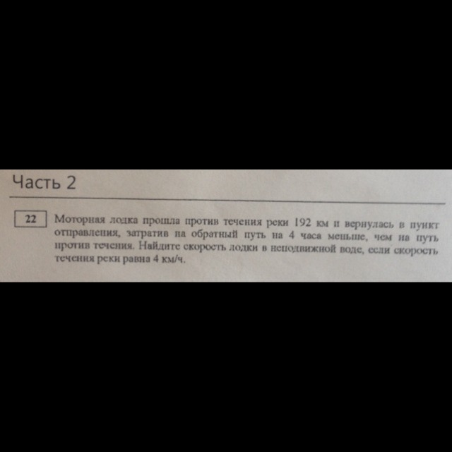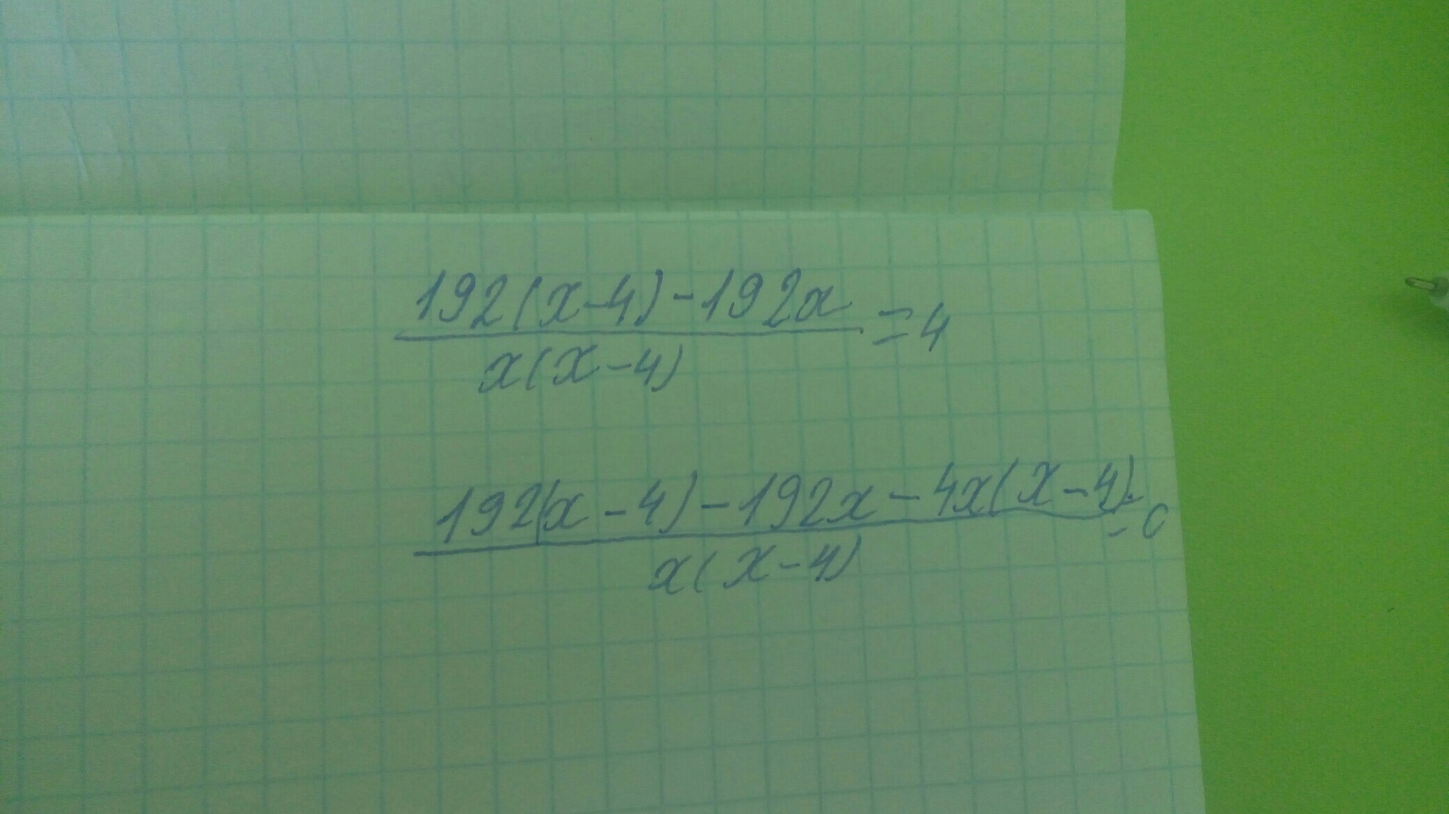 Нехай x це скільки годин він витратив на початку а x-4 на зворотній шлях тоді за годину туди він витратив 192/x а звіти 192/x-4 складемо рівняння