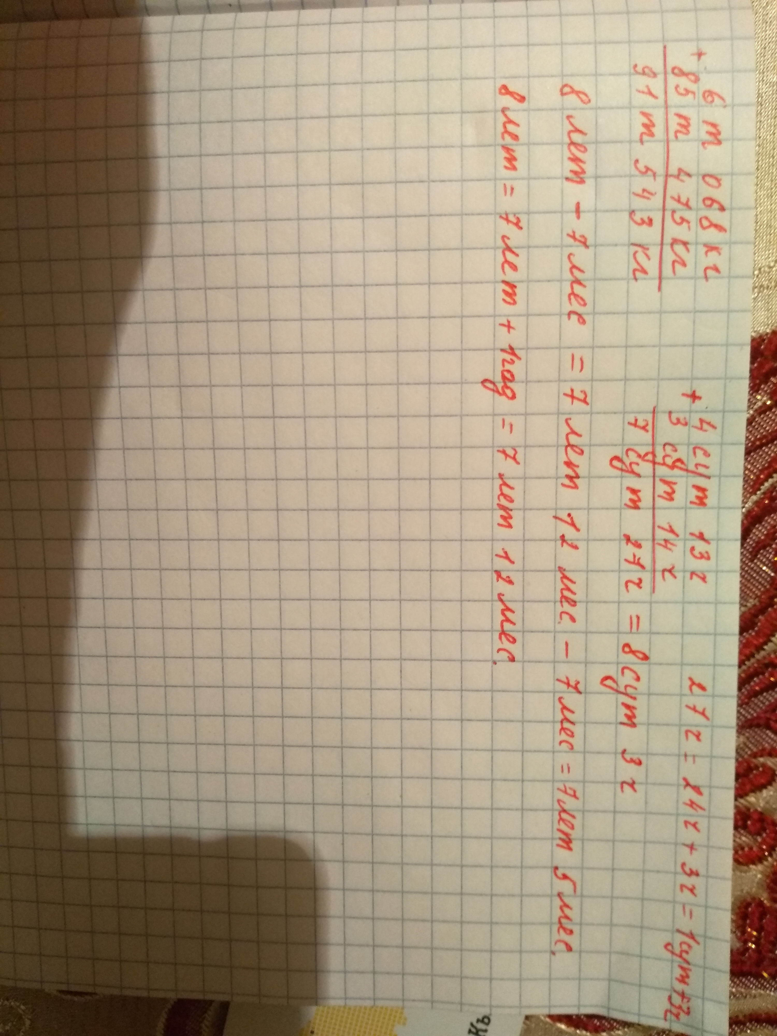 6т68кг+85т475кг=6+85 тонн 68+475 кг=91 тонна 543 кг;