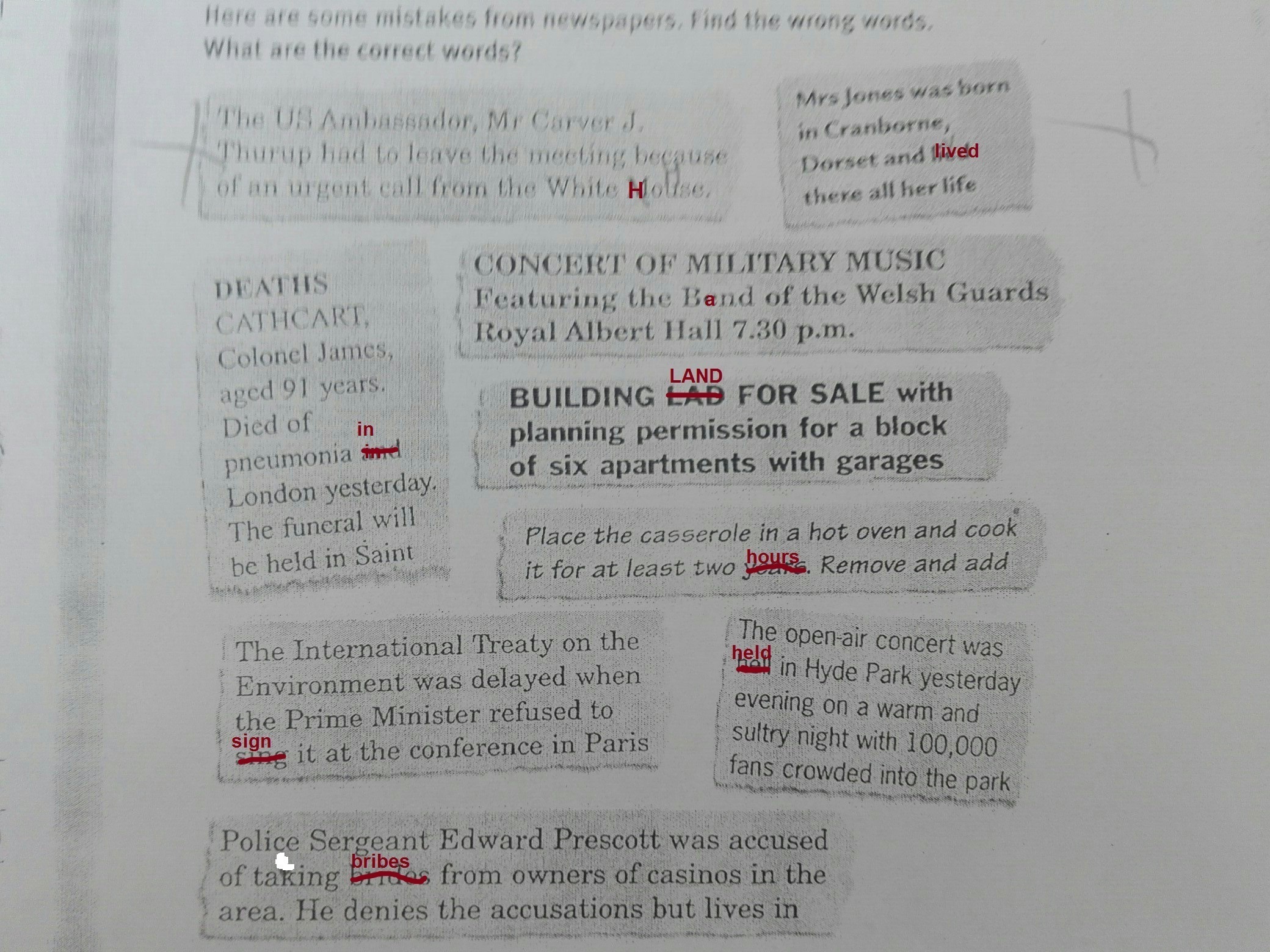 всем привет !Помогите мне с английским языком ,пожалуйста.Надо найти ошибку грамматическую ошибку в каждой рамочке.