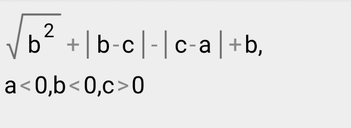 sqrt{ {b}^{2} }  +  |b - c|  -  |c - a|  + b =  |b|  +  |b - c|  -  |c - a|  + b =  - b  + (c - b) - (c - a) + b =  c - b - c + a = a - b