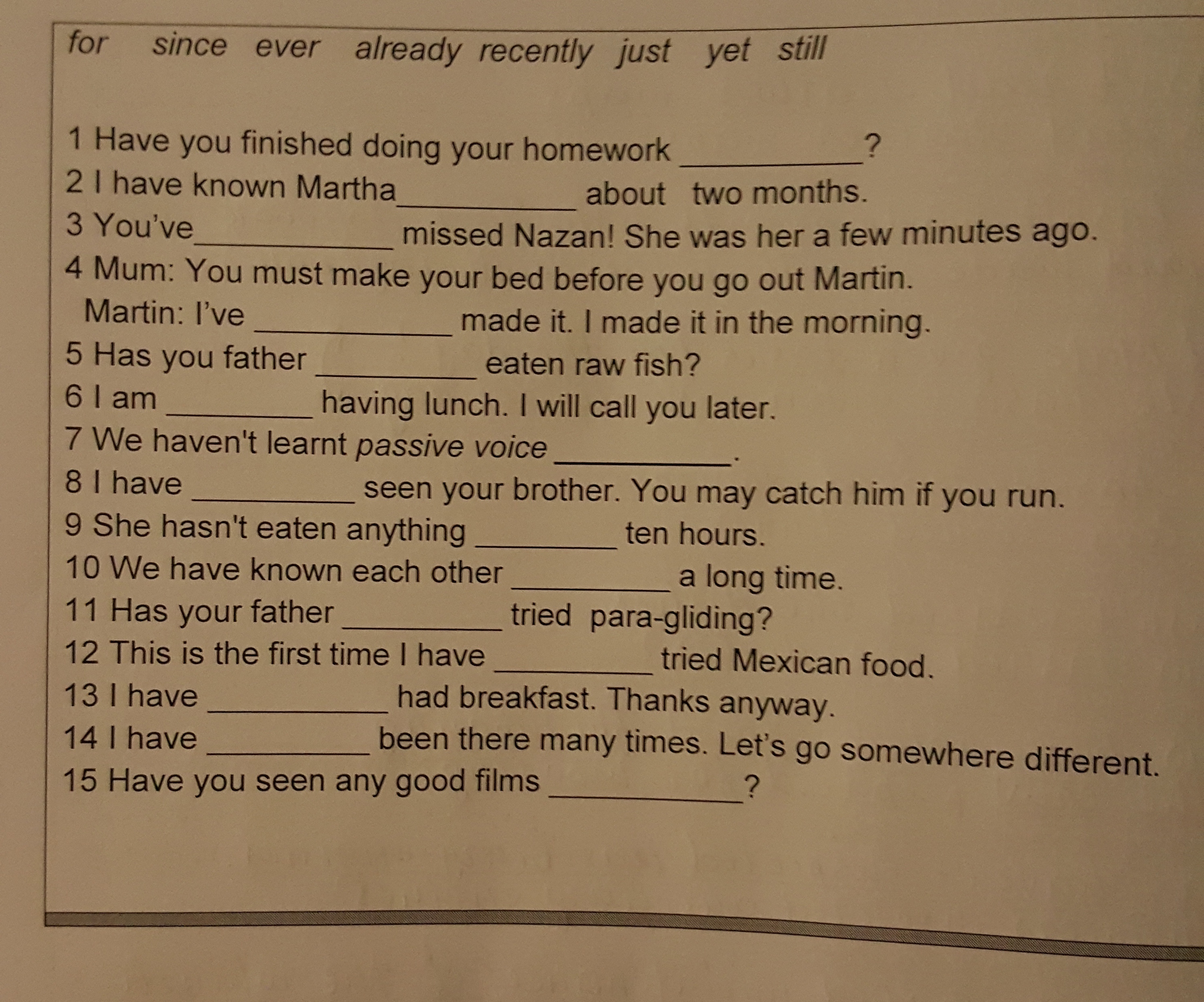 15 Have you seen any good films recently?