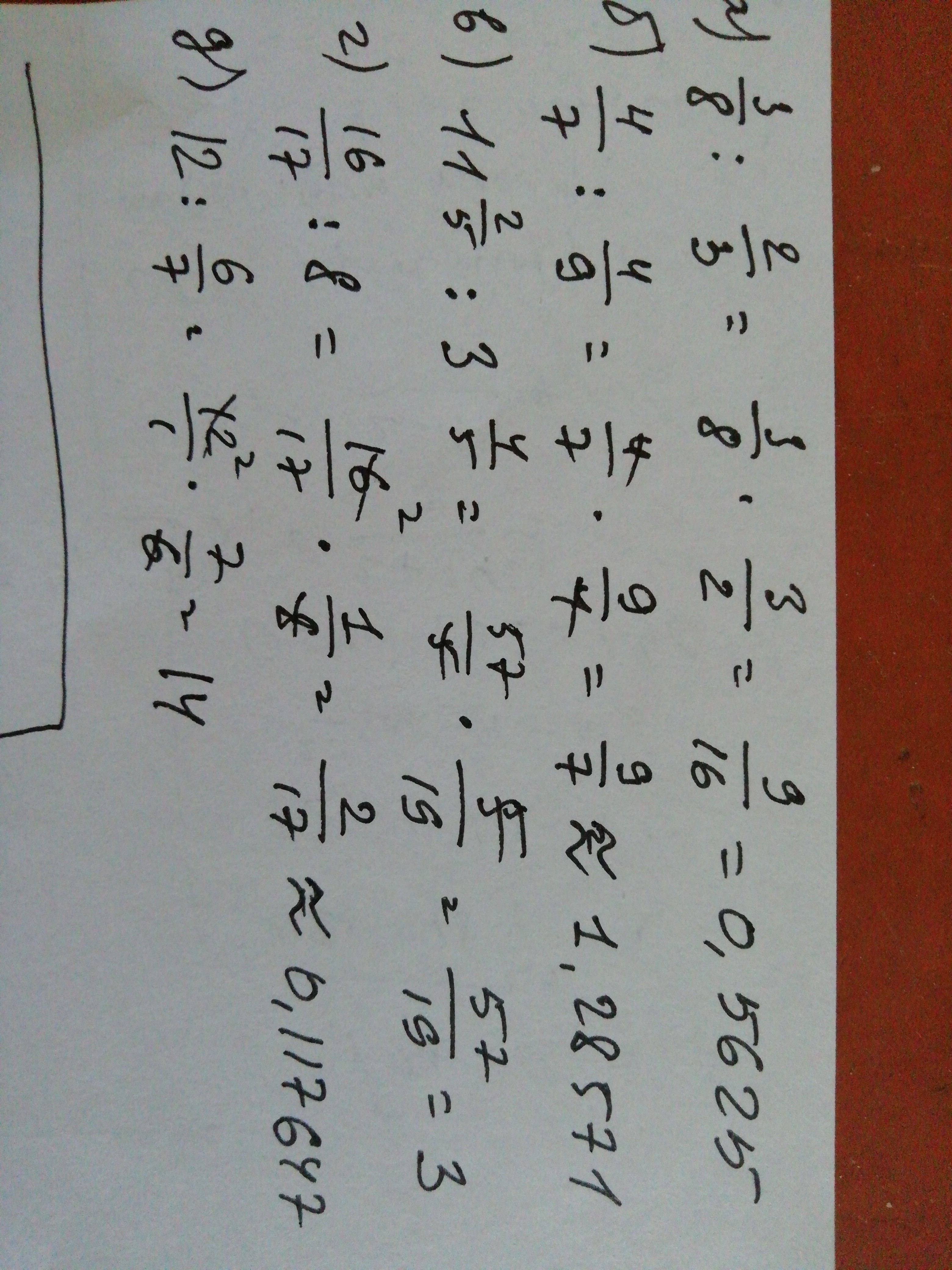 а) 3/8:2/3= 3*3/8*2=9/16;