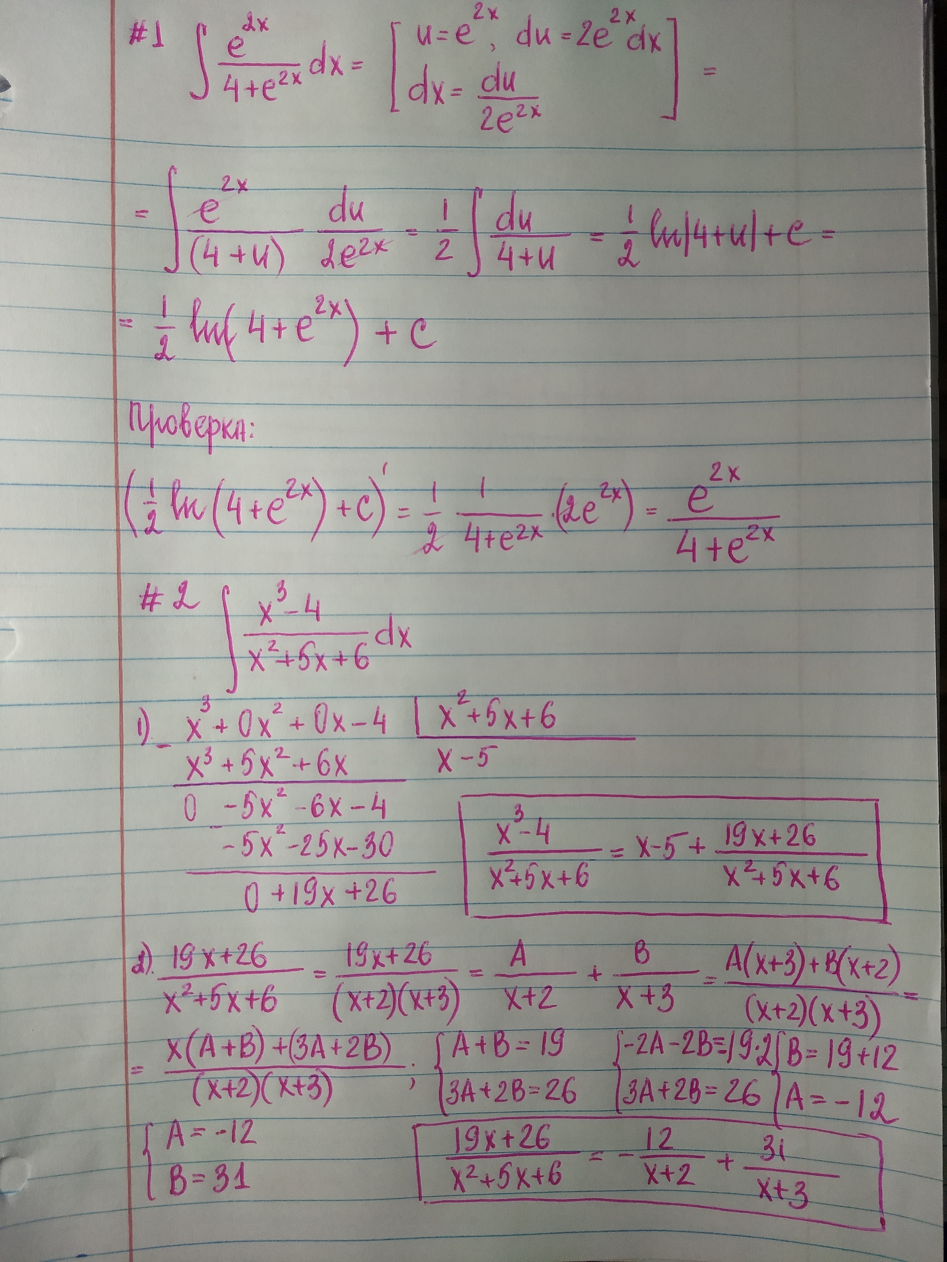 Найти указанные неопределённые интегралы и результаты интегрирования проверить дифференцированием