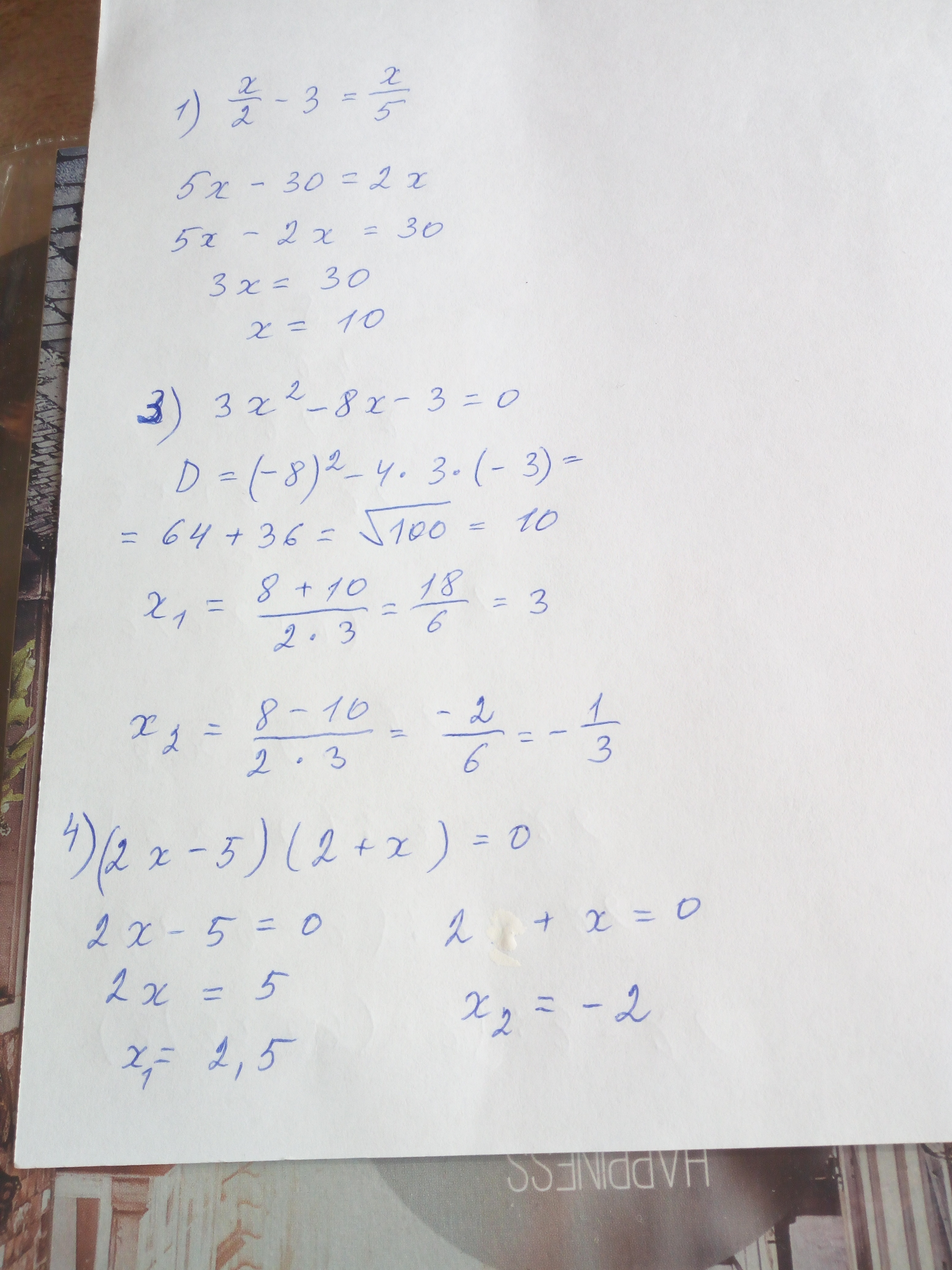 1) х/2-3=х/5