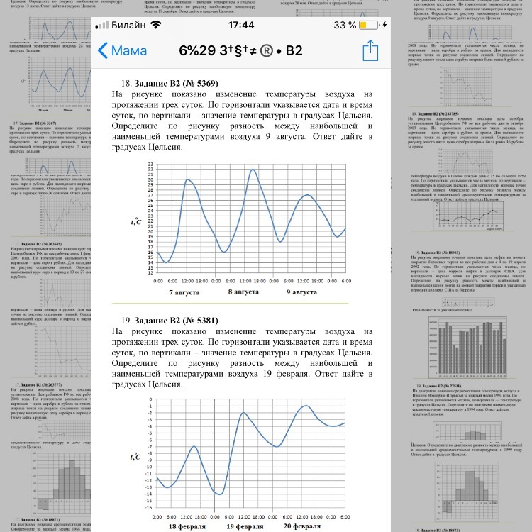 Задание В2(N=5369) Ответ: 27-18=9°С