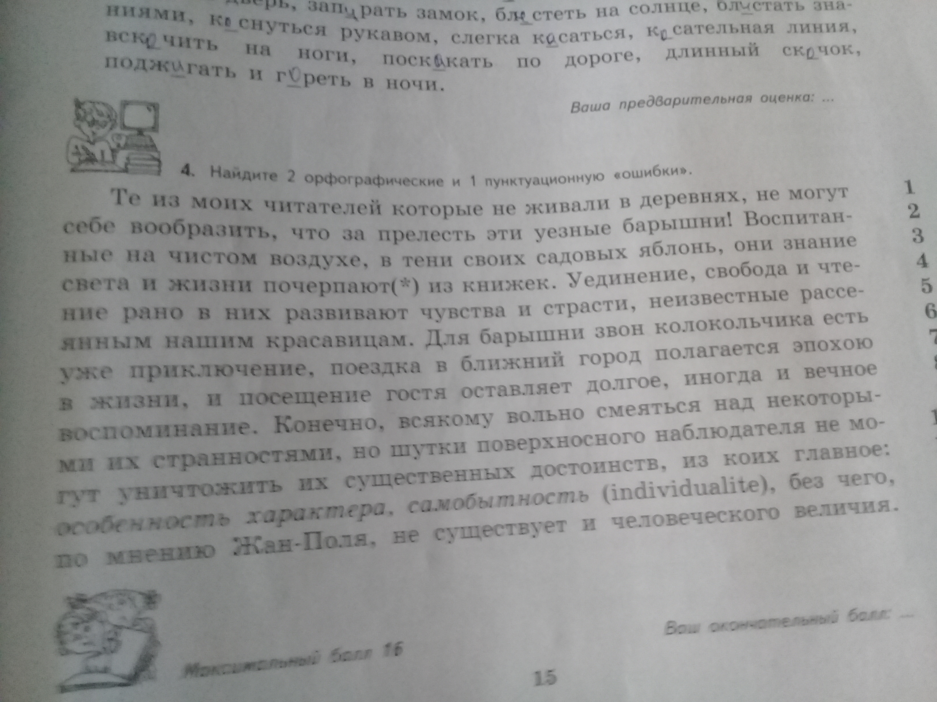 Ошибка пунктуации в предложении: Те из моих читателей, которые не живали в деревнях, не могут себе вообразить, что за прелесть эти уезДные барышни! Ошибки орфографии в словах: уезДные, поверхносТного.